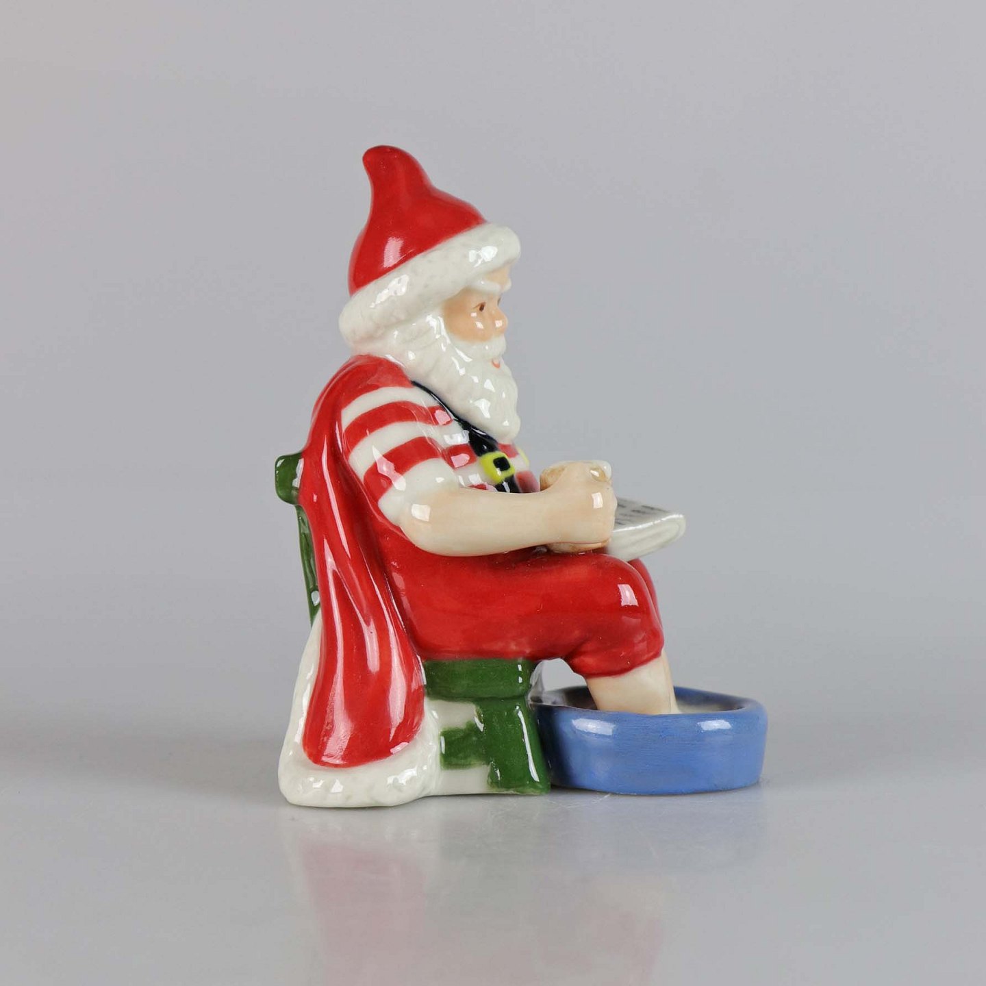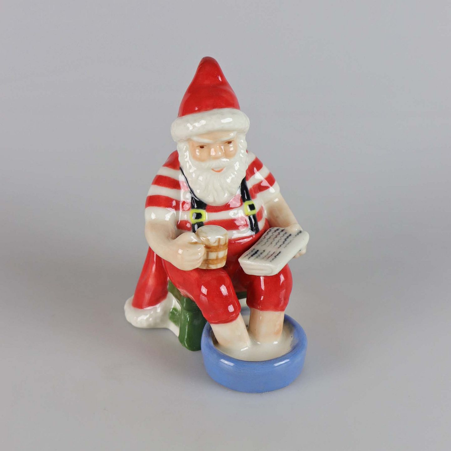 Årets Julemand i porcelæn År 2014. Julemanden med en kop chokolade og fødderne i vand.