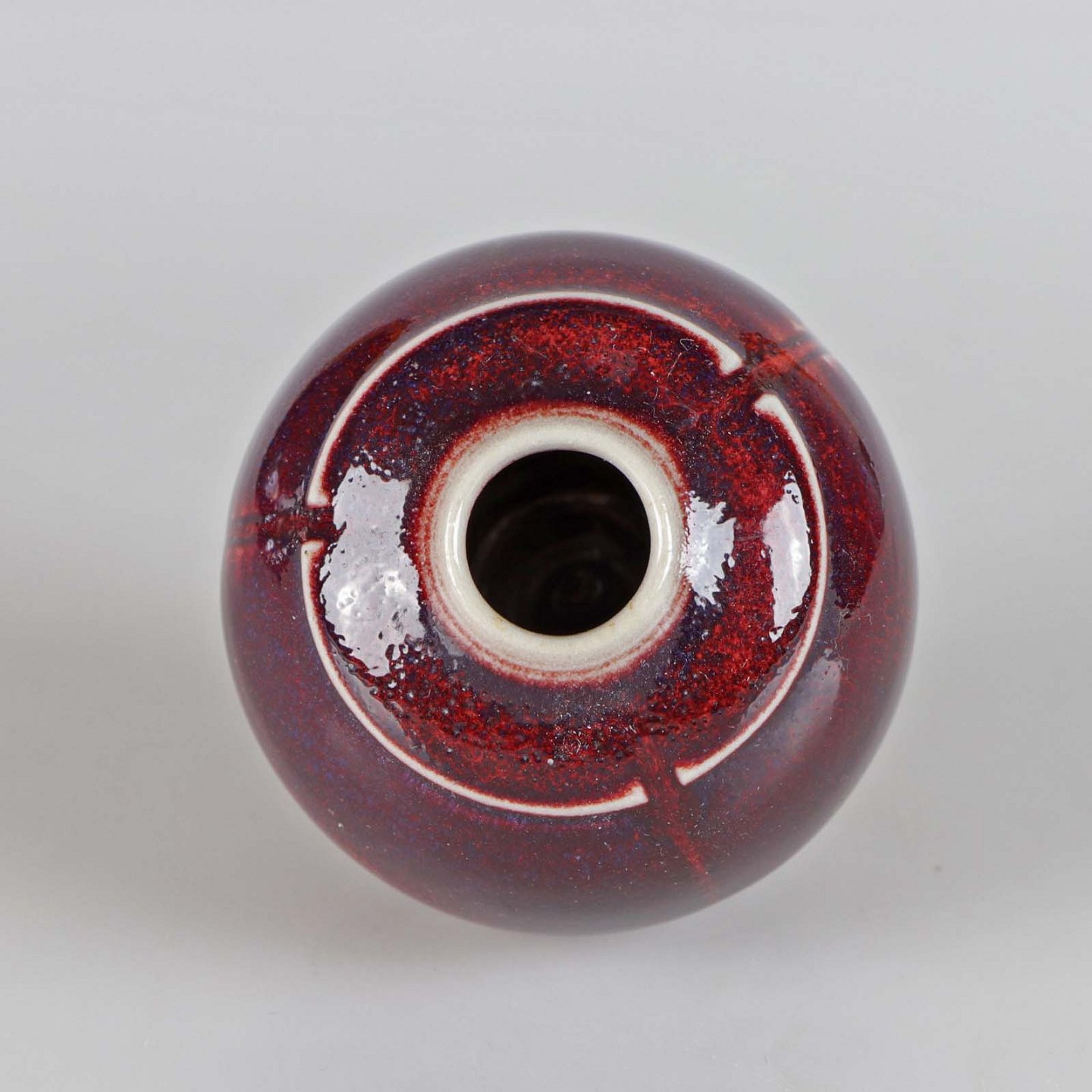 Bordeaux miniature rund vase af glaseret stentøj, kugleformet