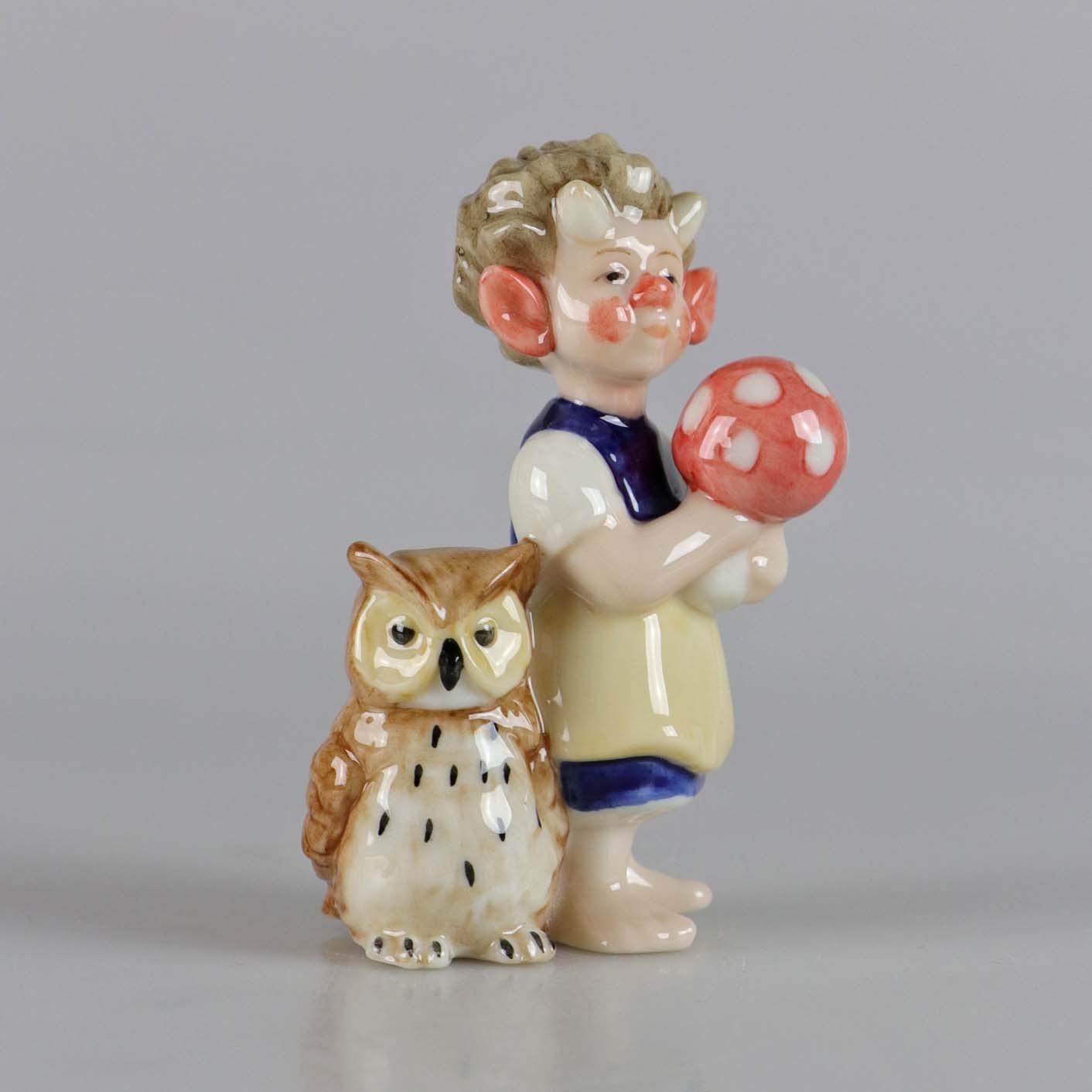 Porcelænsfigur fra Collections serien Troldefamilie. Troldepige med ugle og svamp.