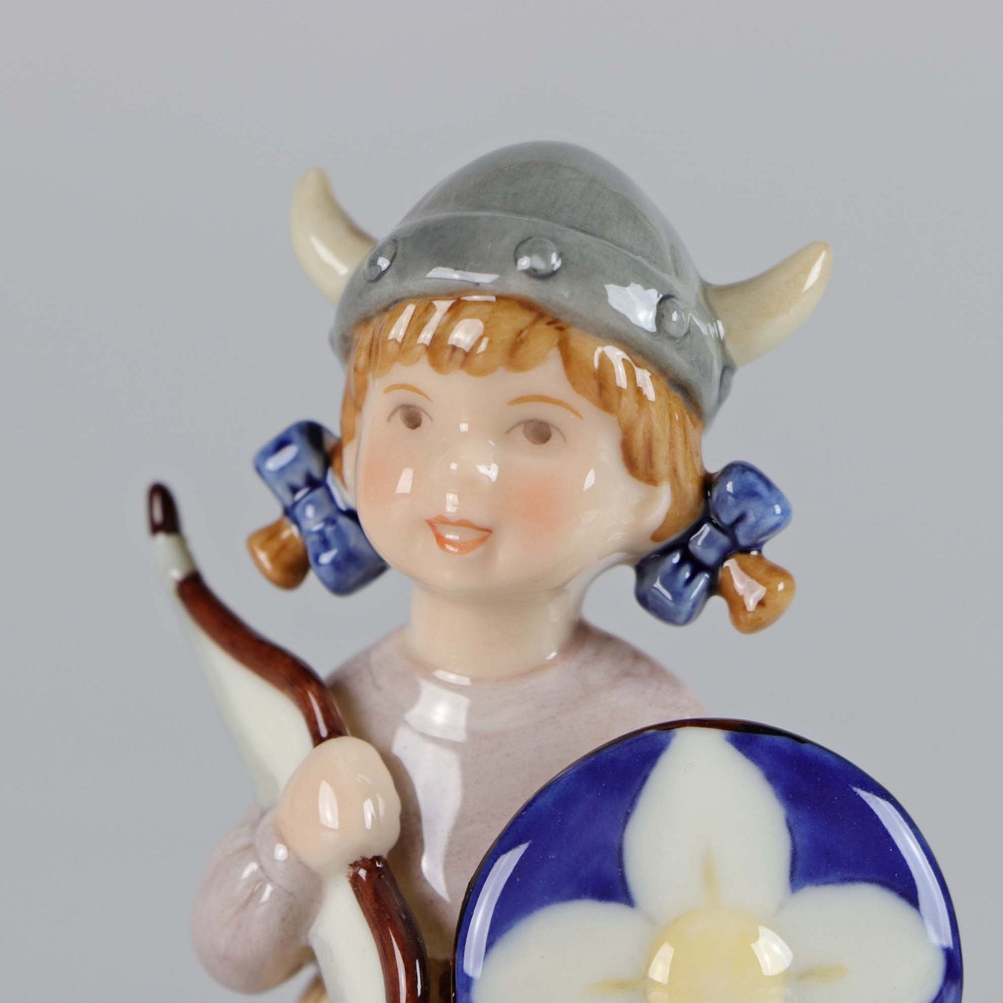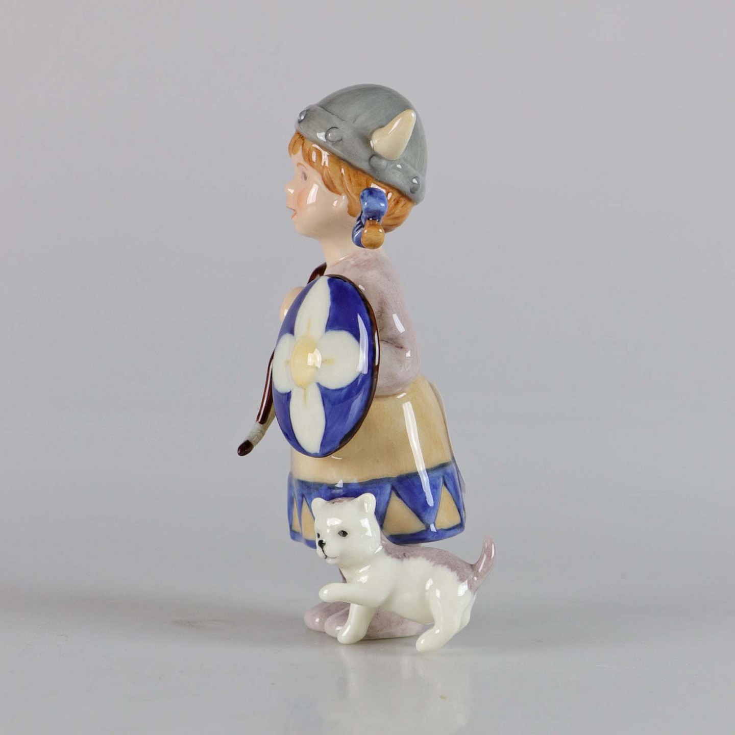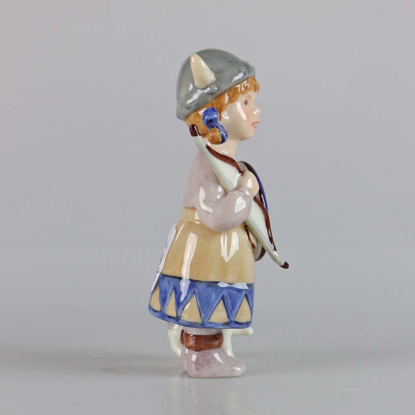 Årets Viking 2003 i porcelæn fra serien Mini Collection Viking. Pige med skjold, bue og kat. No 086 Vikingenavn: Freja.