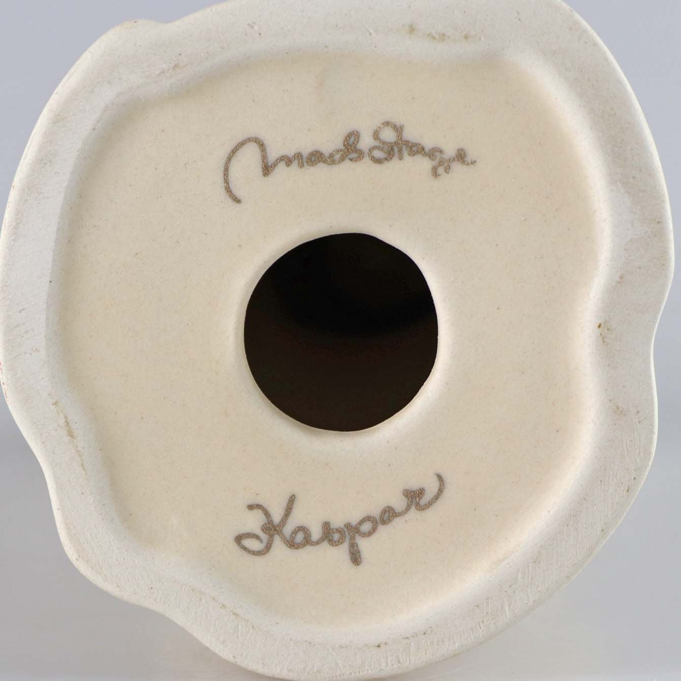Figur i porcelæn. Kaspar fra De tre vise mænd. Når guldknoppen tages af, er der hul til et kerte lys