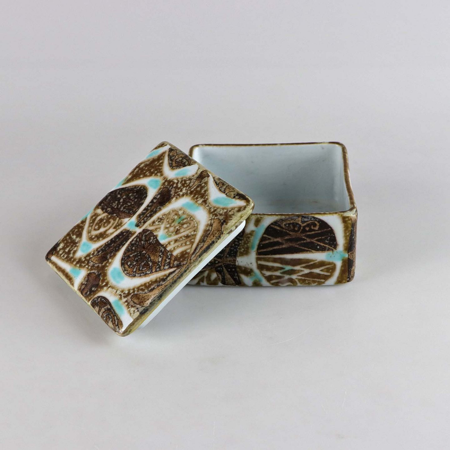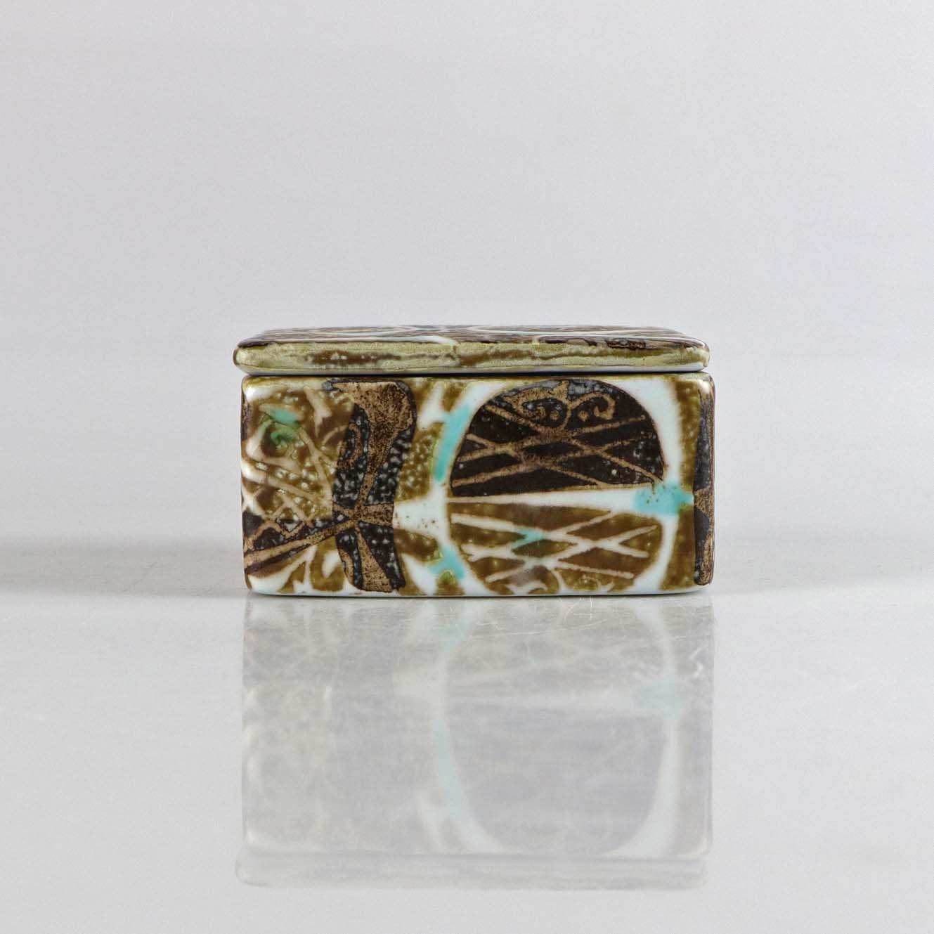Baca æske med låg i brun og grønlig fajance no 721/3267