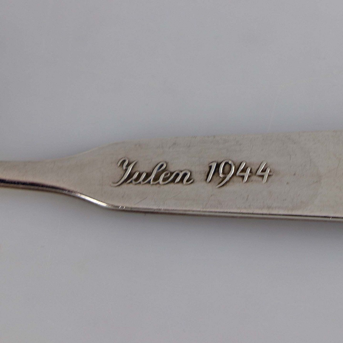 Juleske år 1944 i delvist forgyldt sterling sølv indlagt med graduerede lilla emalje hjerter