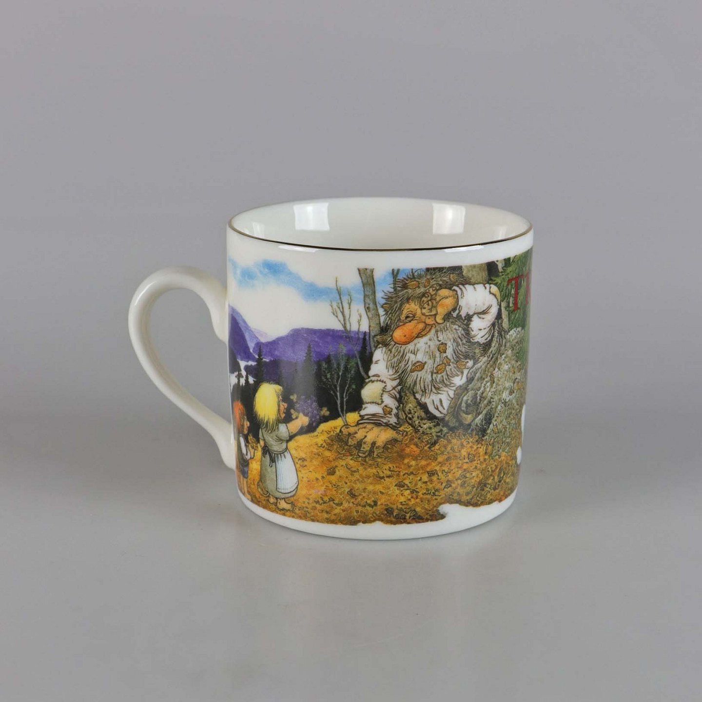 Krus i porcelæn fra serien Trollrike-troll-land med motiv fra bogserien Troll