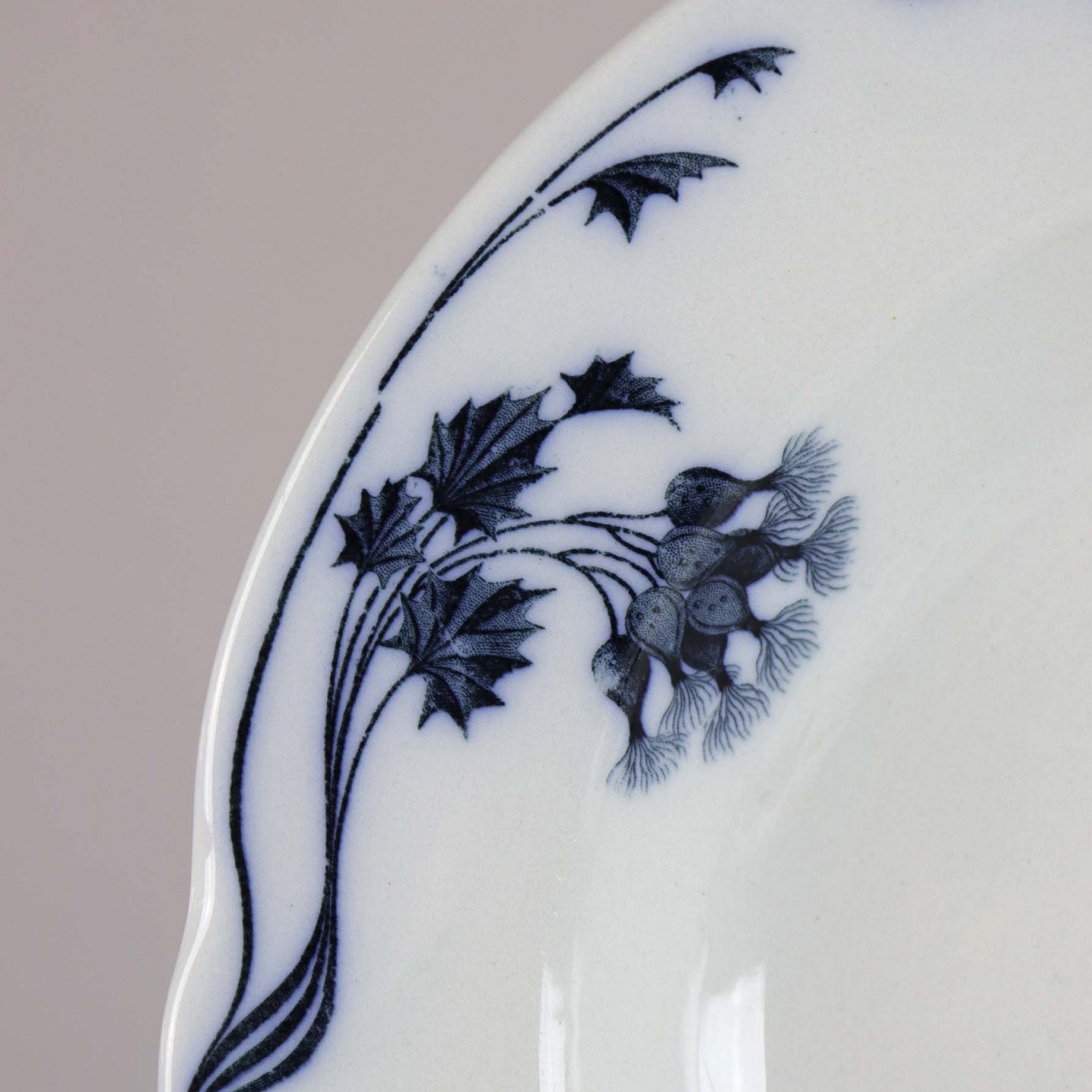 Dyb tallerken i fajance fra stellet Tidsel. Det tyske navn er Milla