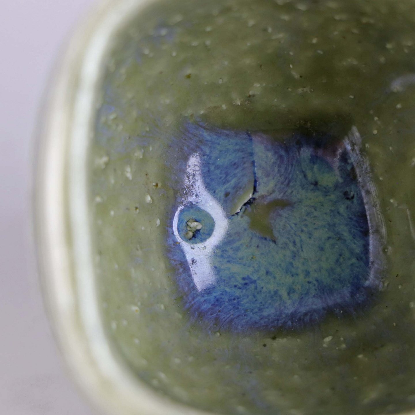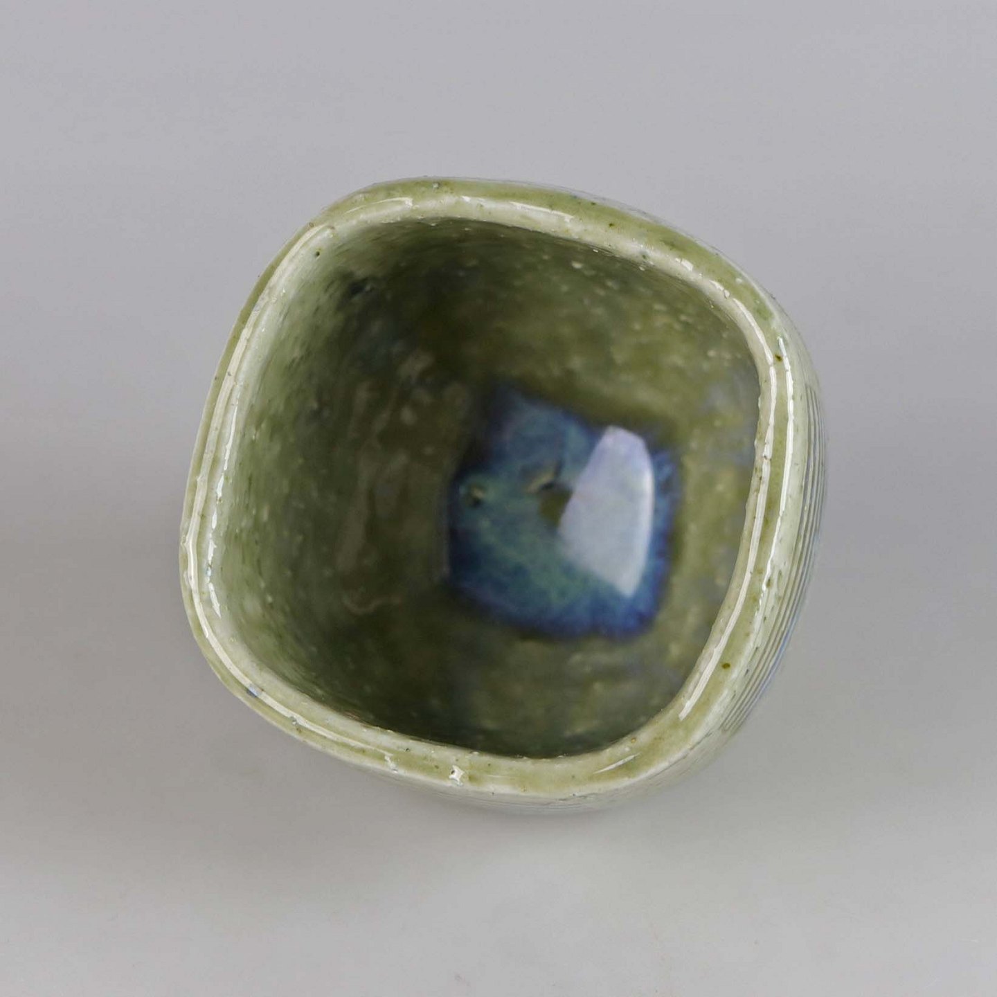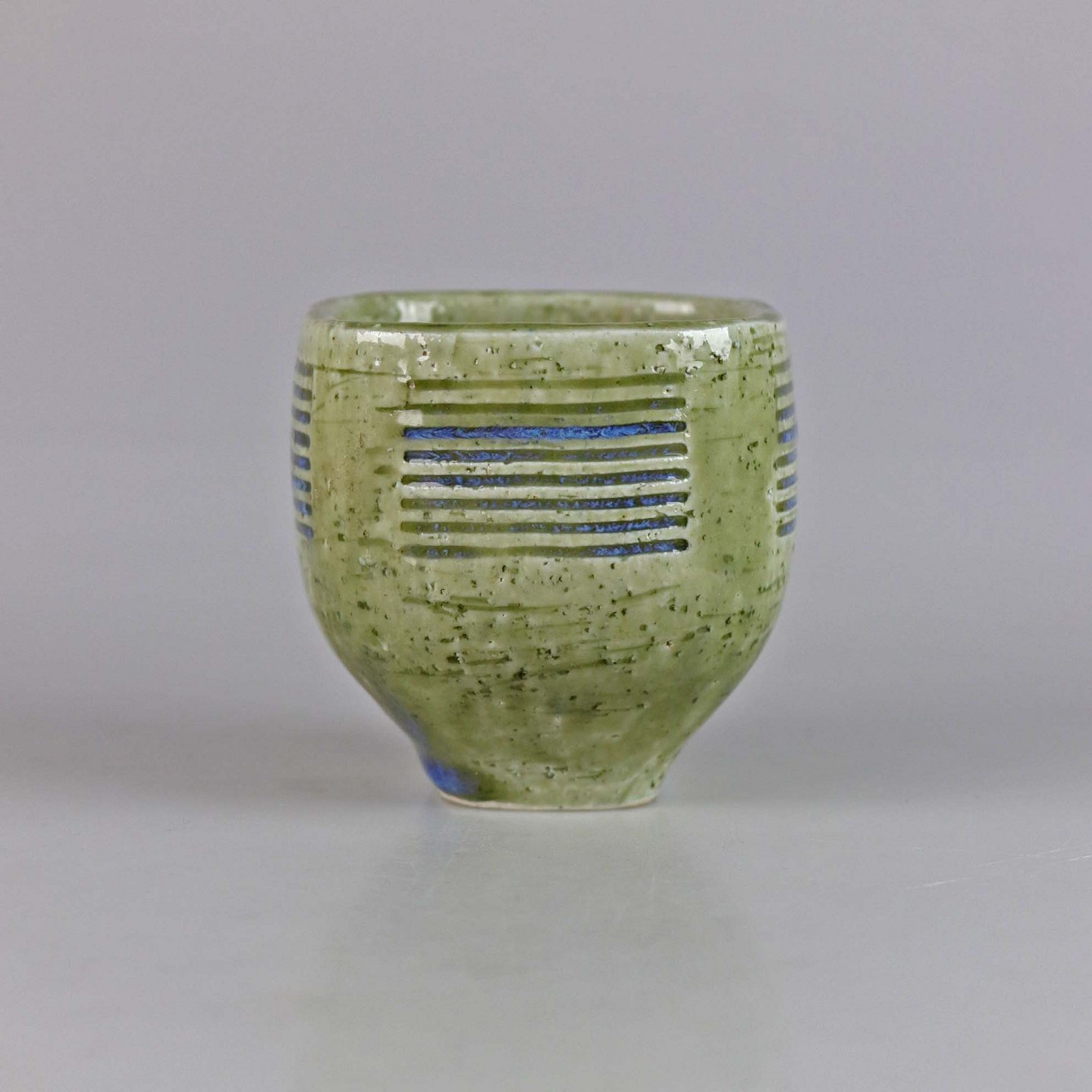 Kvadratisk vase i stentøj med grønlig glasur