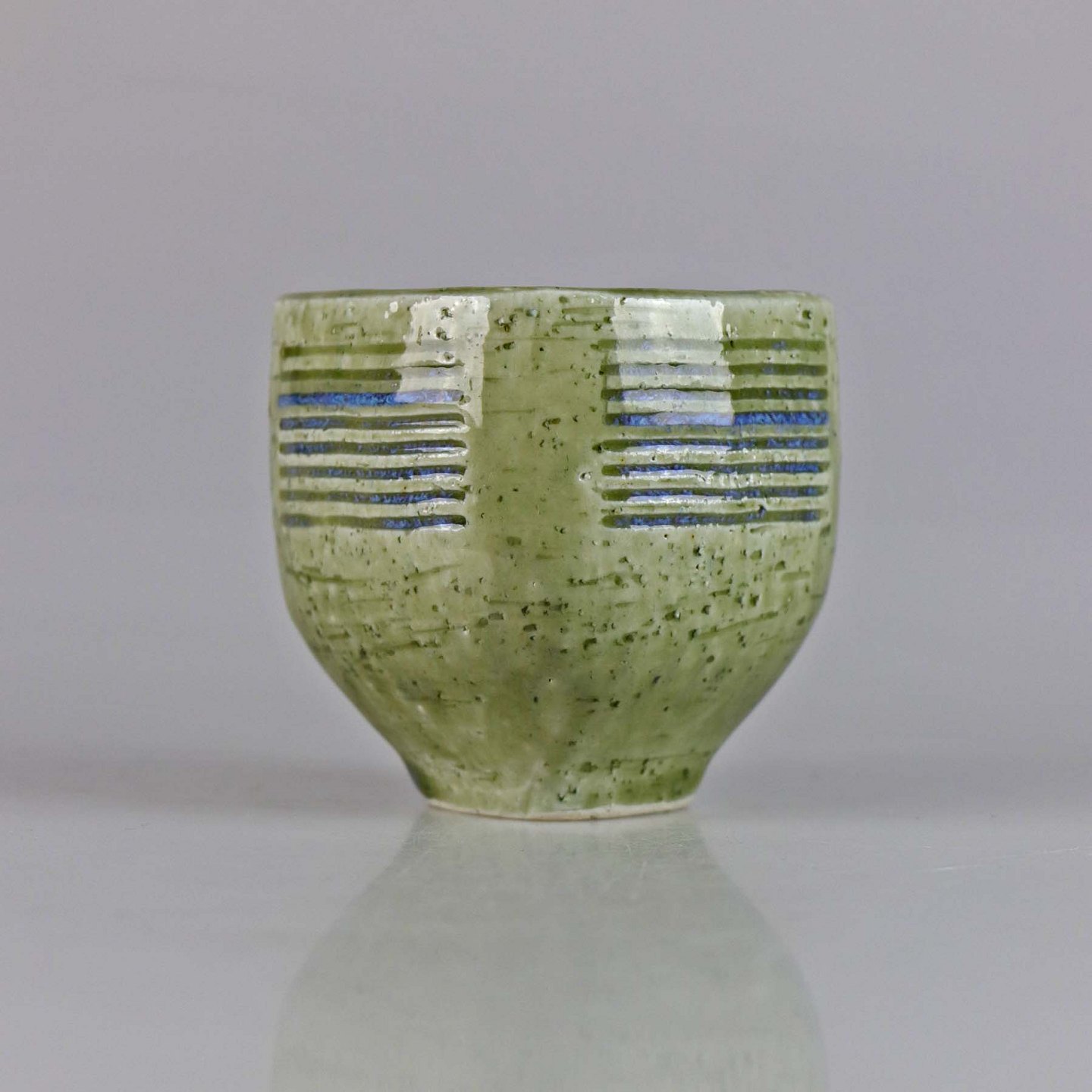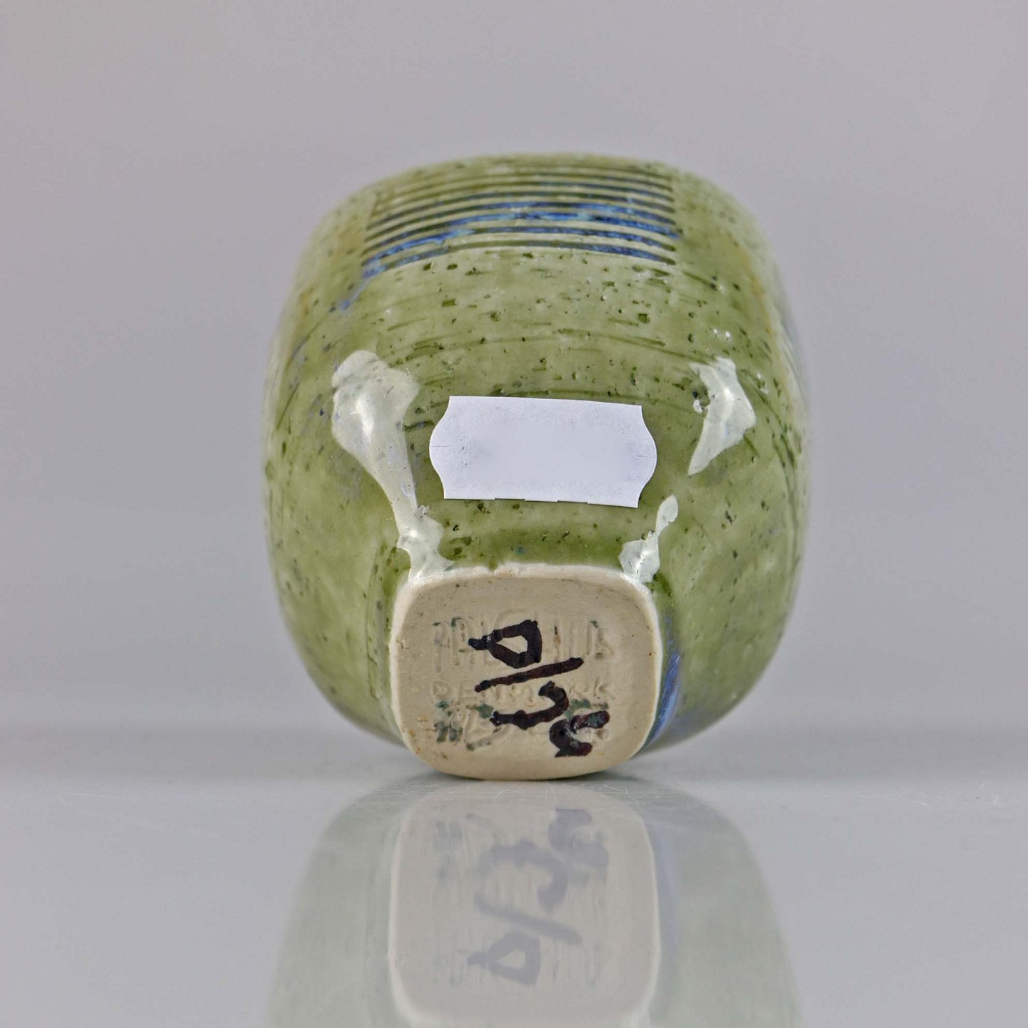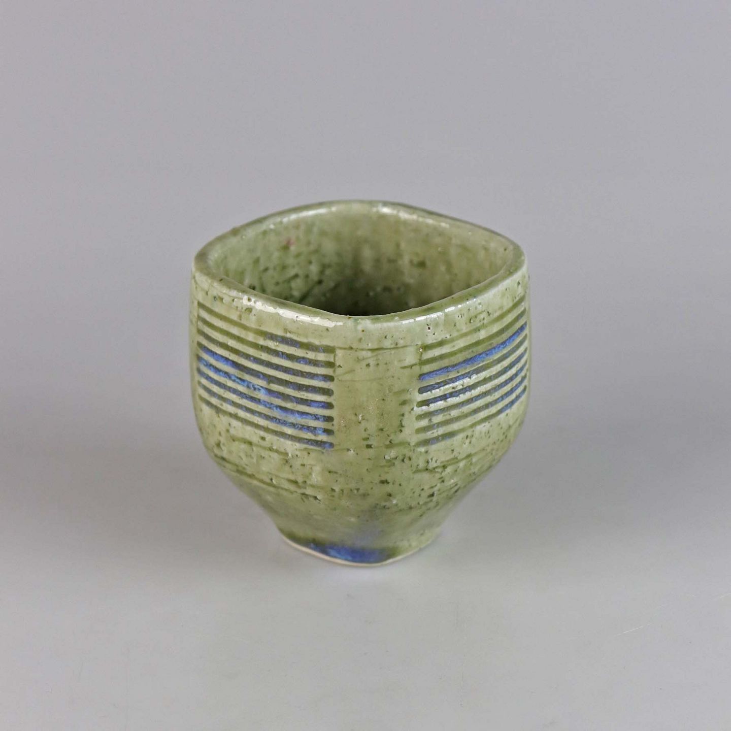 Kvadratisk vase i stentøj med grønlig glasur