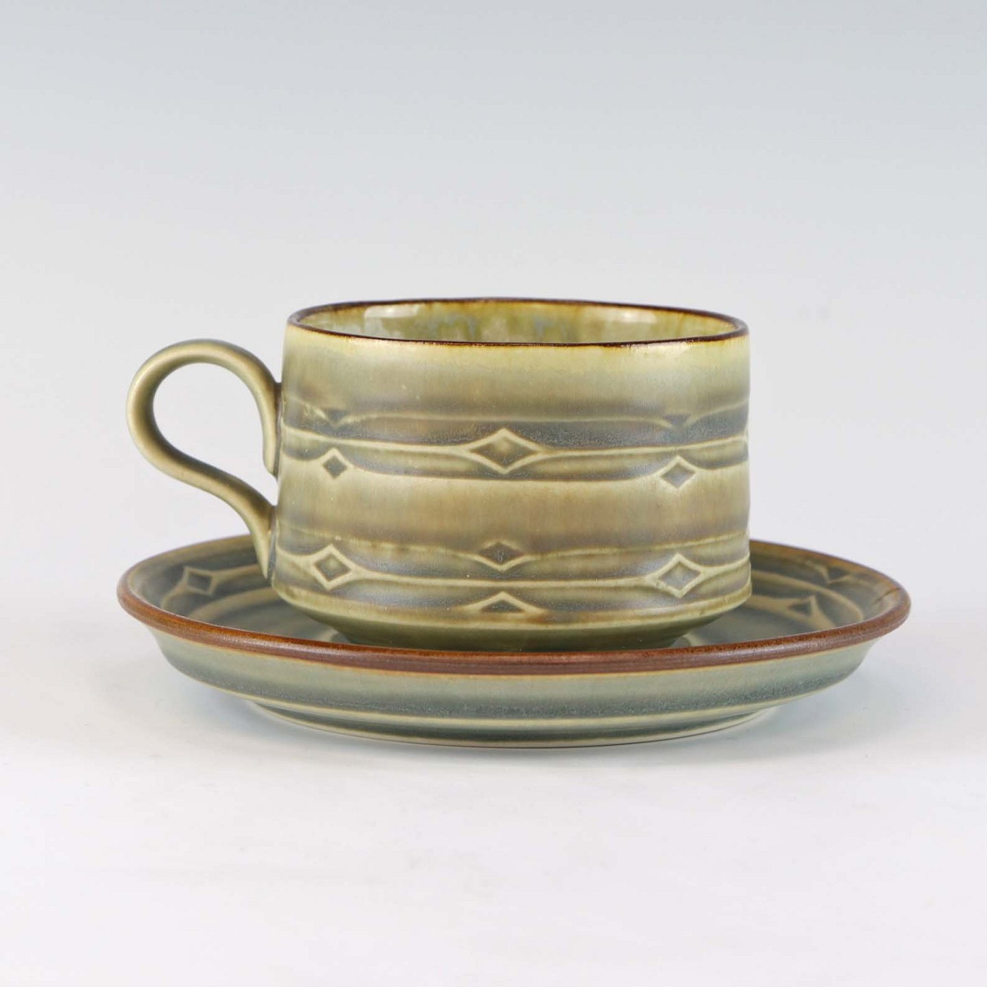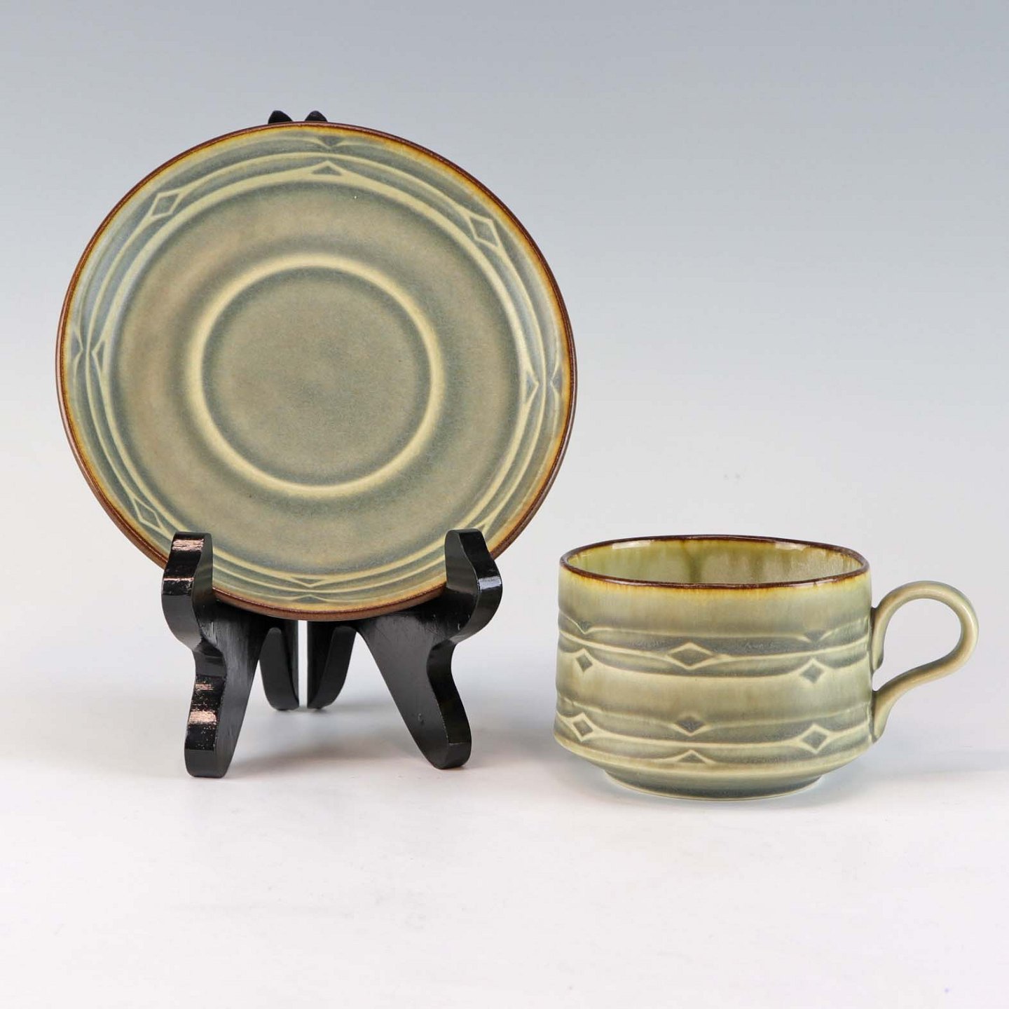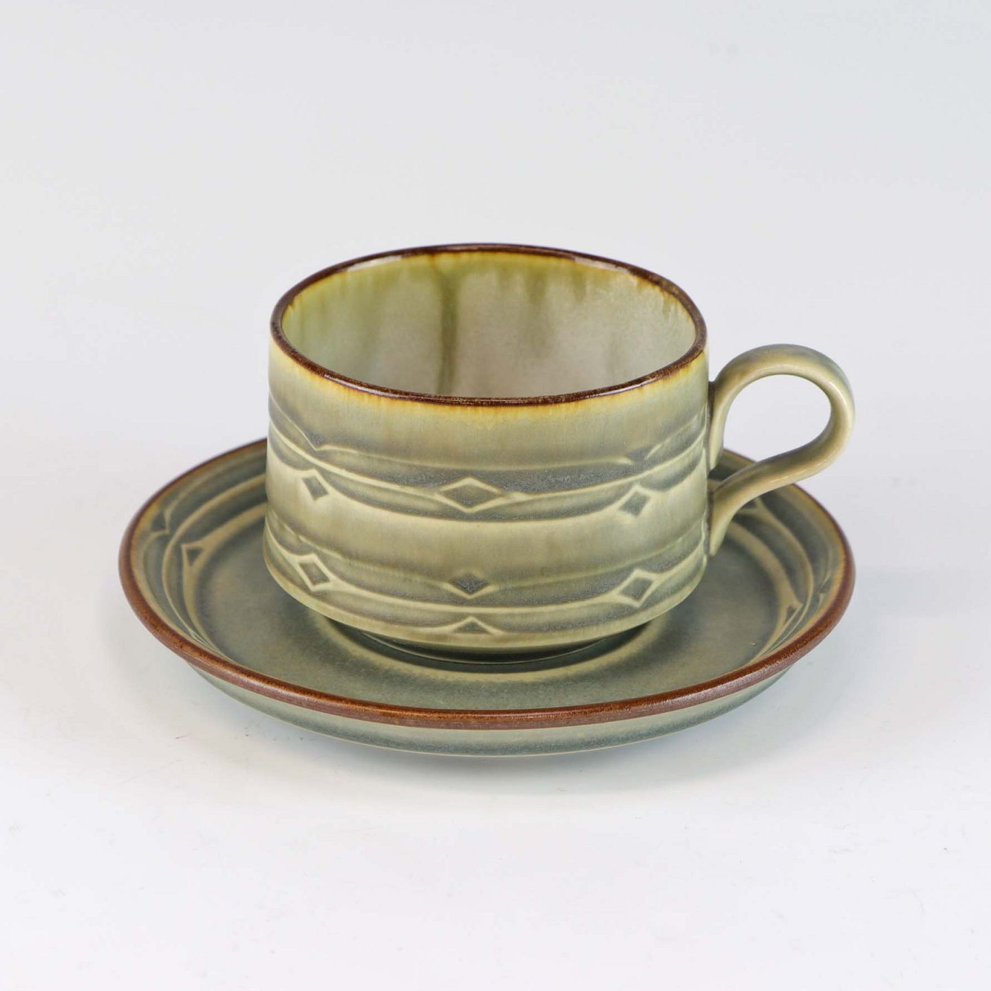 Kaffekop med underkop af ovnfast stentøj fra stellet Rune. No 305
