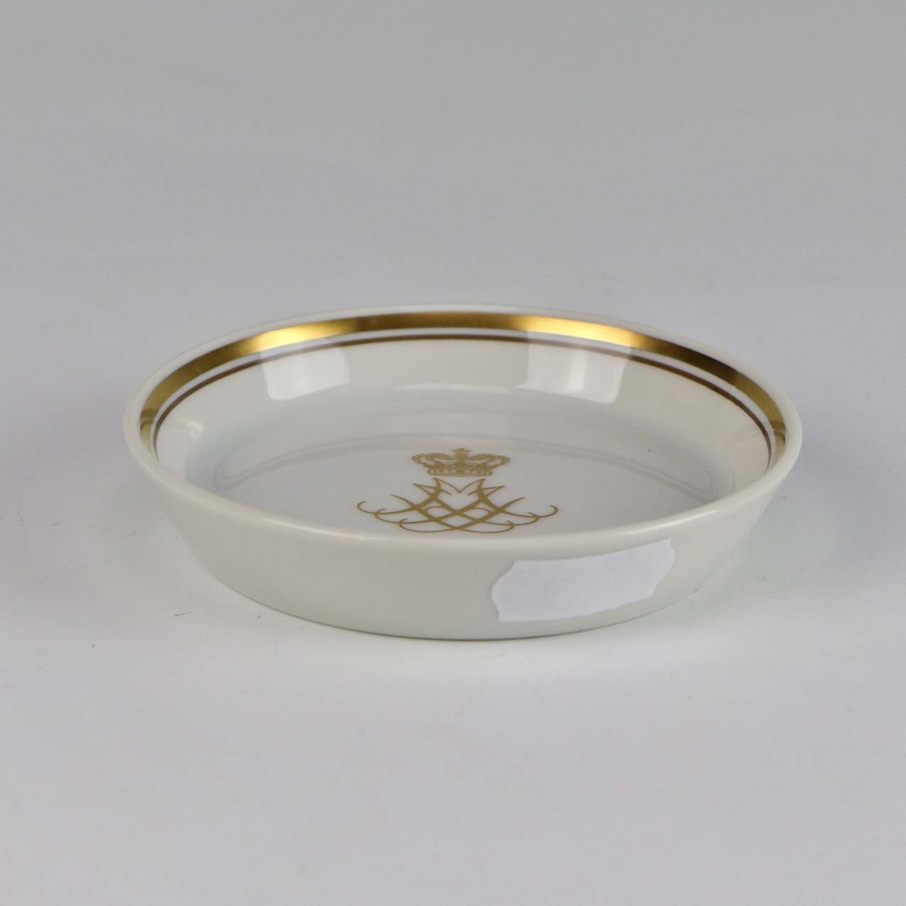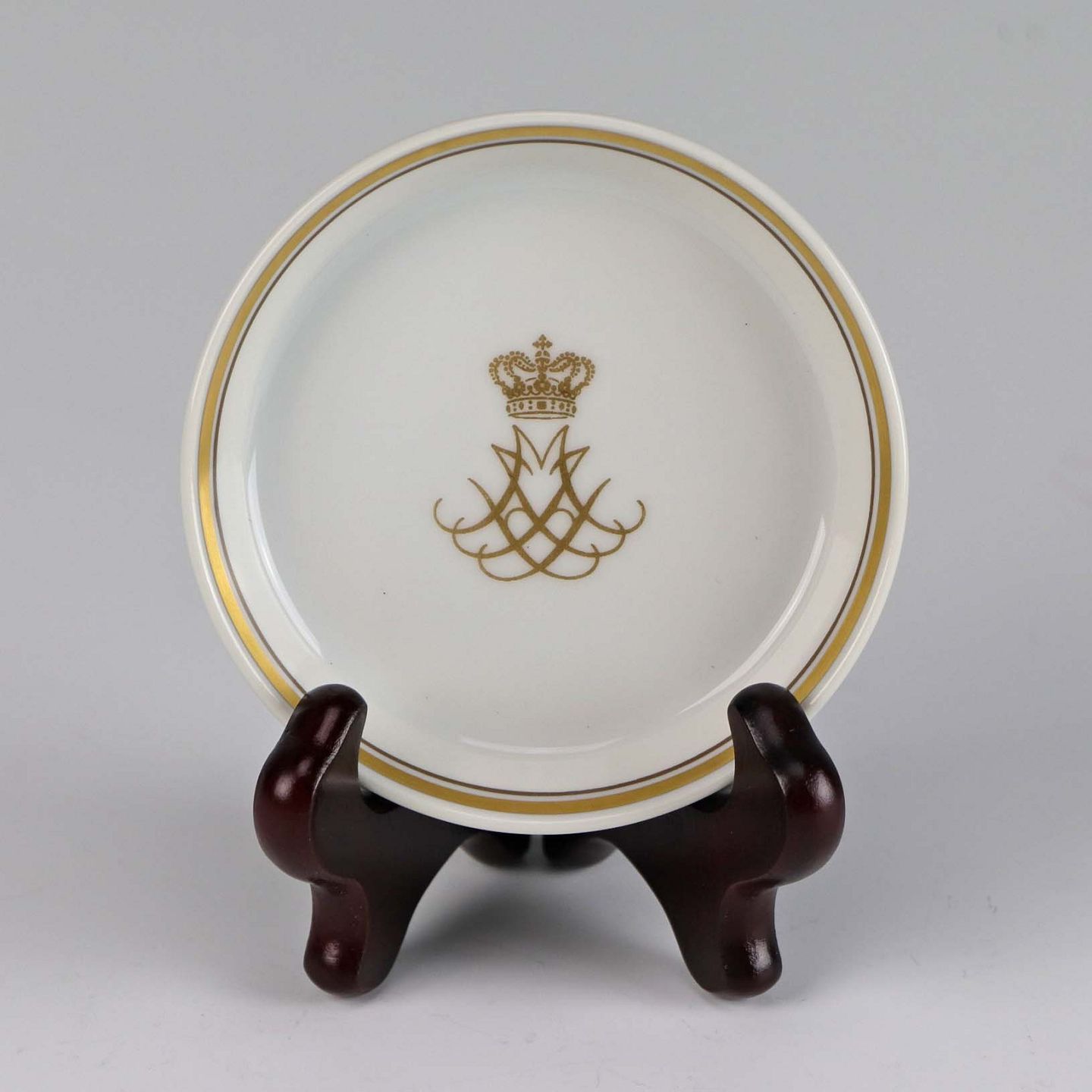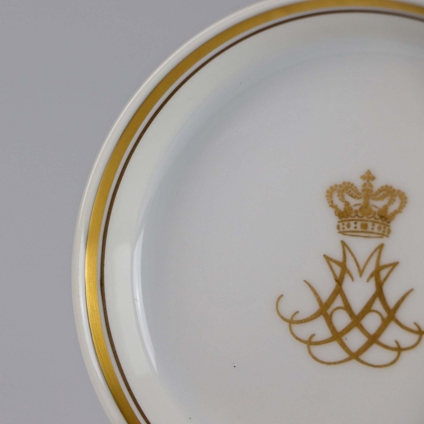 Rund asiet af porcelæn med Dronning Margrethe´s monogram