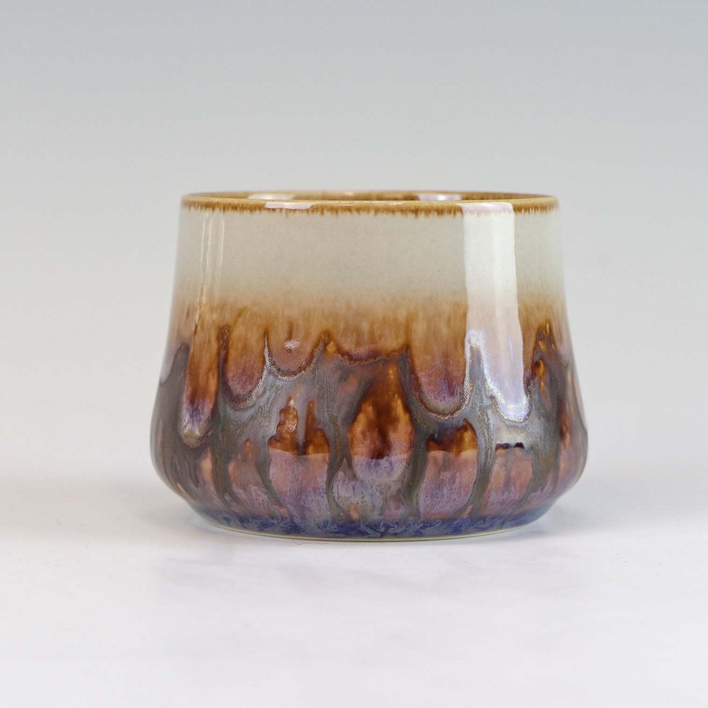 Stellet Mexico er et ovnfast stel dekoreret med marmoreret glasur, i brune og blå farver, så det ser ud til kanten er brændt.