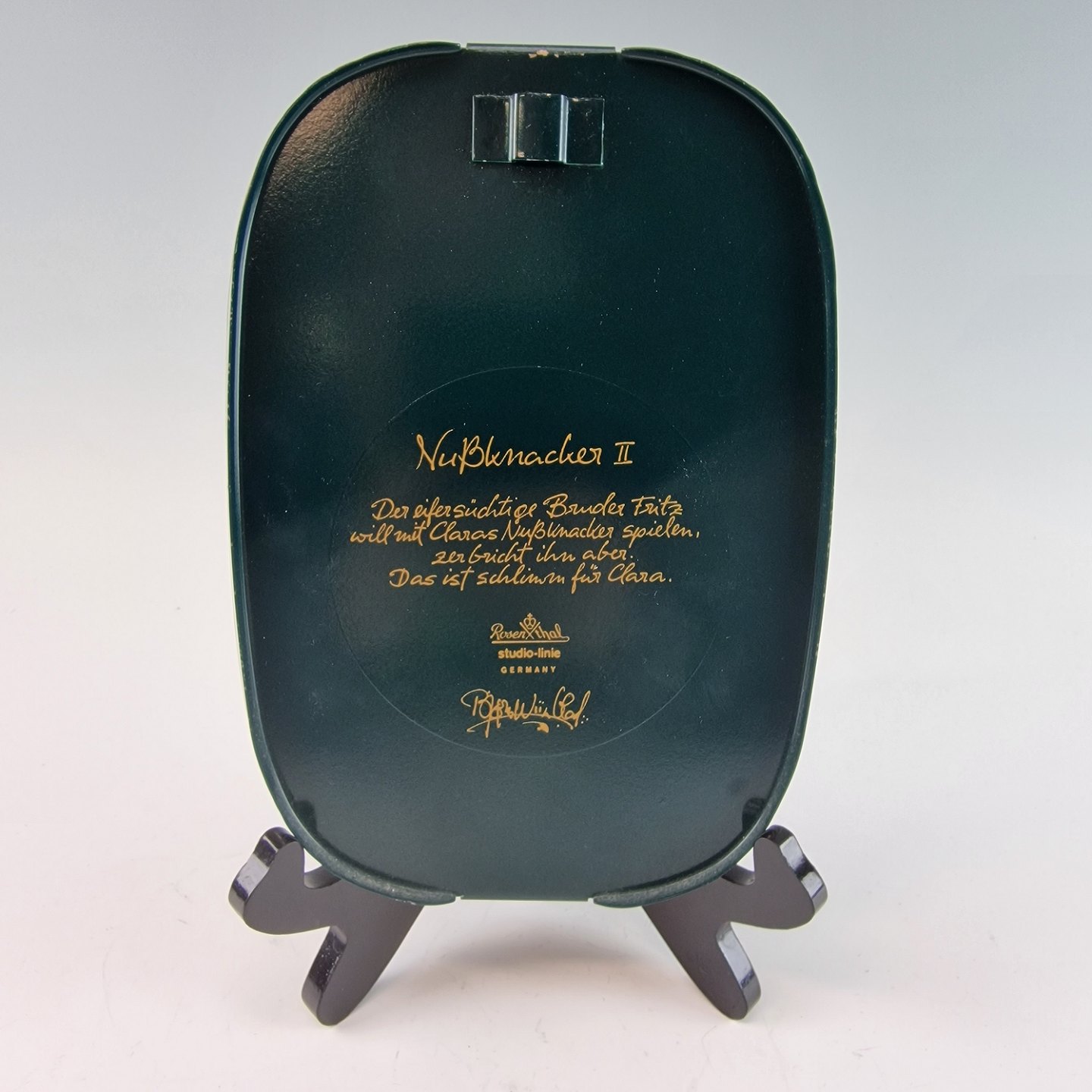 Sjælden glasplatte-serie lagt i farver under beskyttende metalbaggrund. Forestiller eventyret "Nøddeknækkeren" hvor Fritz forsøger at få Claras nøddeknækker