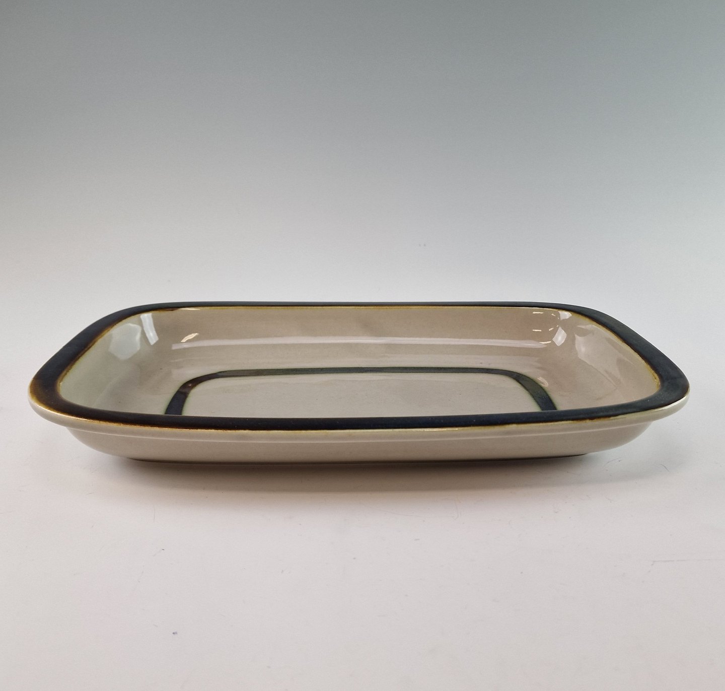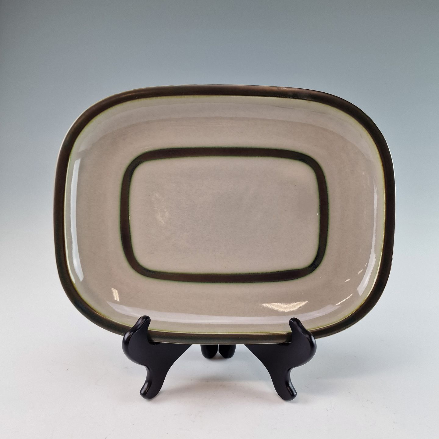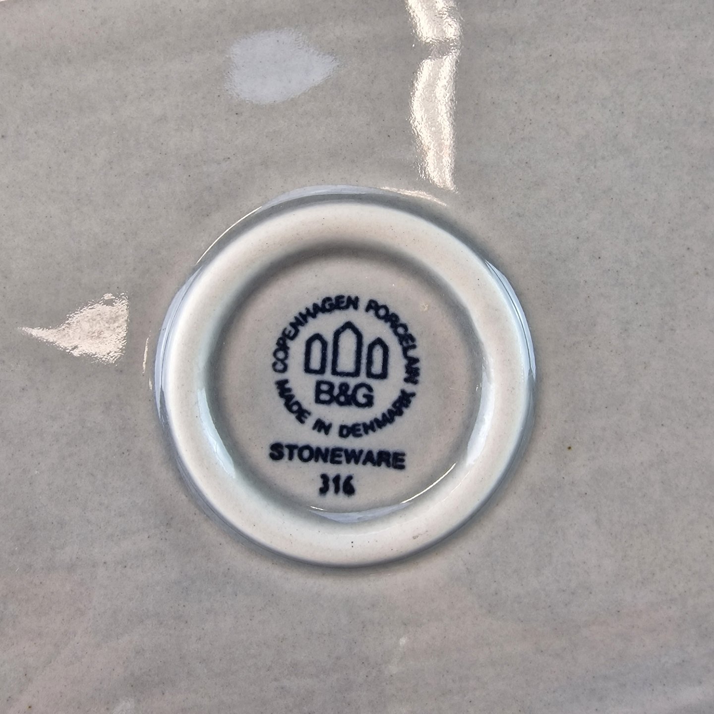 Stellet Tema er af stentøj, glaseret med lys grå og dekoreret med kanter af grønne og brune farver