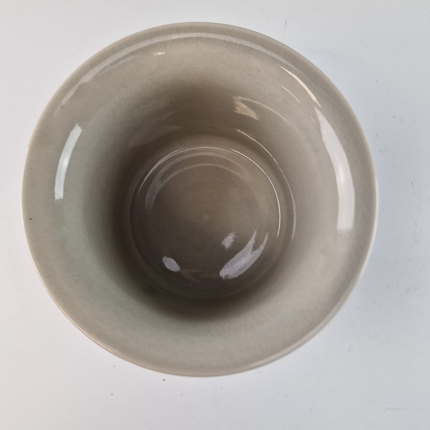 Stellet Tema er af stentøj, glaseret med lys grå og dekoreret med kanter af grønne og brune farver