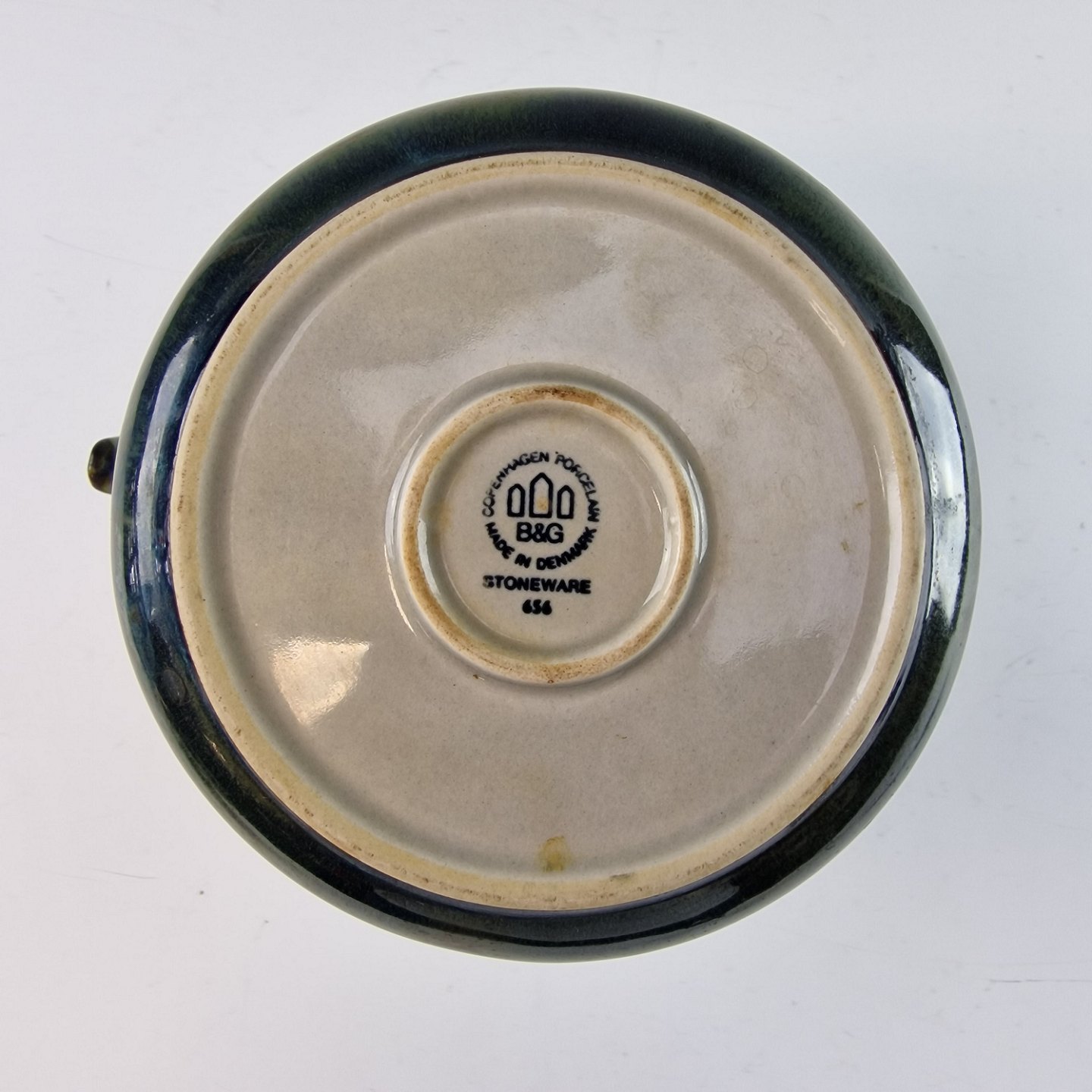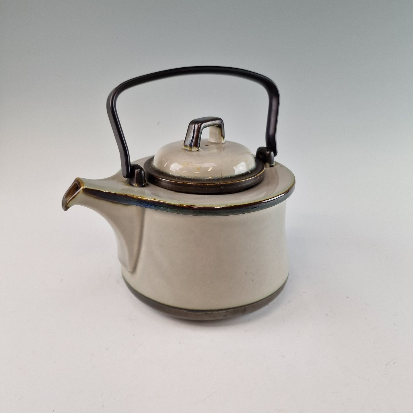 Stellet Tema er af stentøj, glaseret med lys grå og dekoreret med kanter af grønne og brune farver