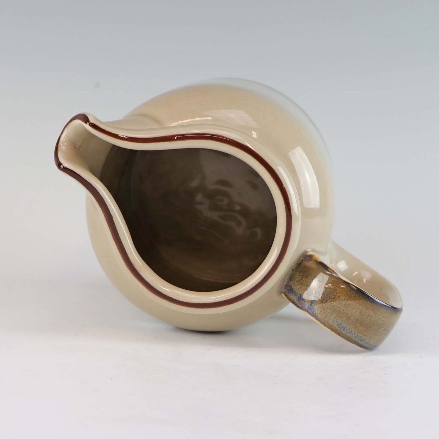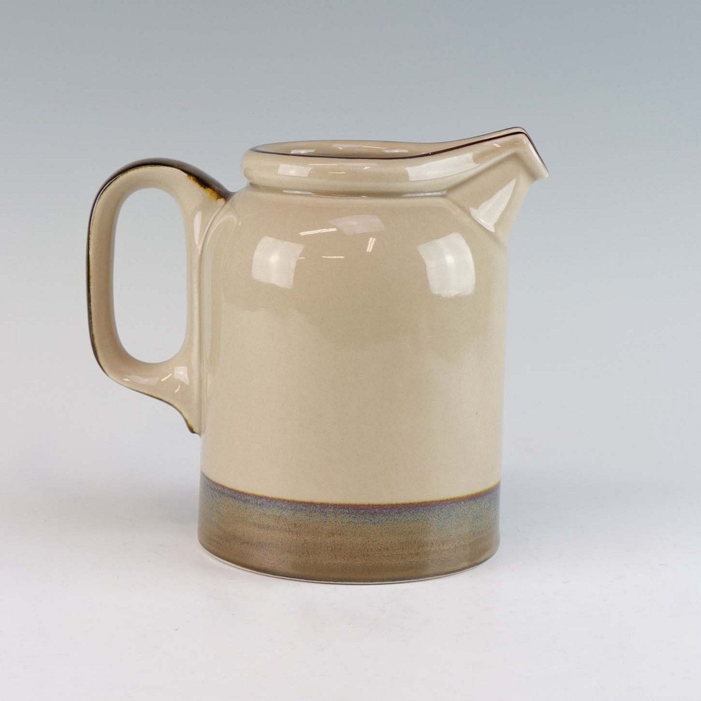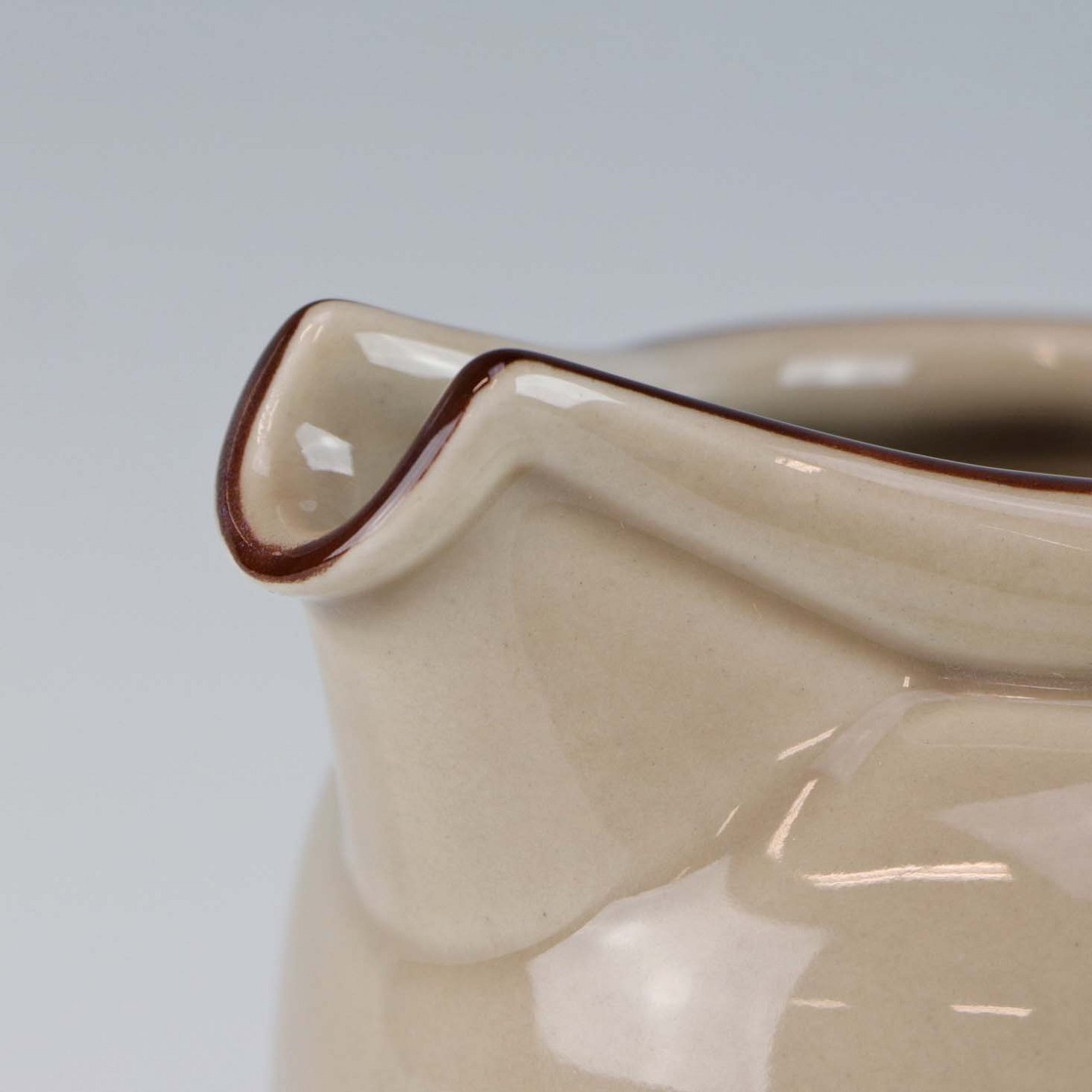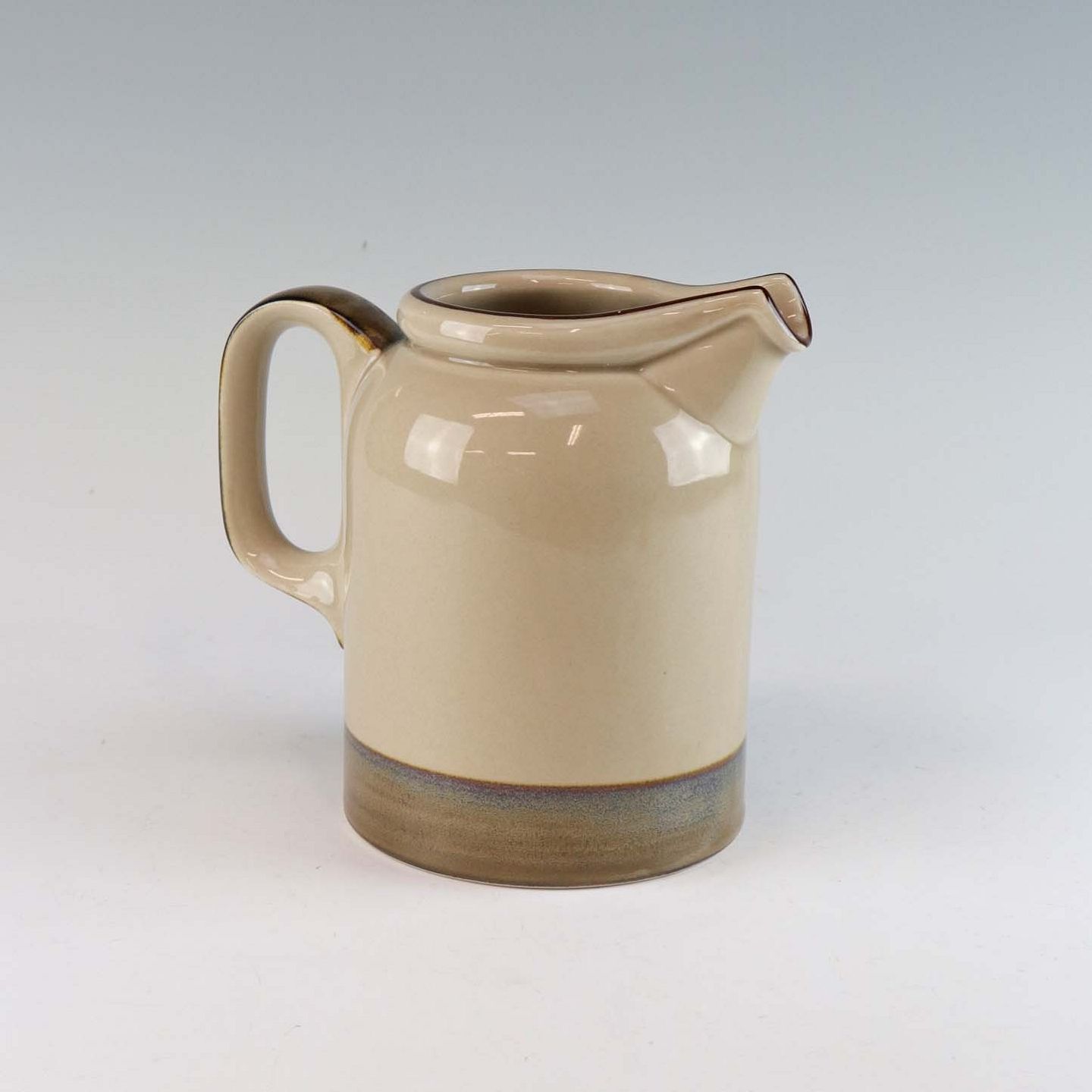 Stellet Peru er af stentøj, glaseret med lys grå farve og dekoreret med bånd af grøn/brunlige farve