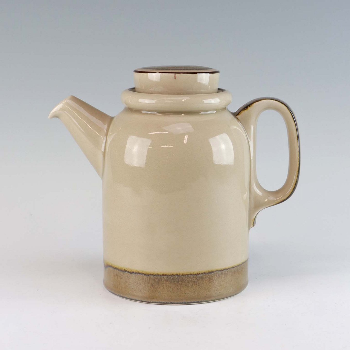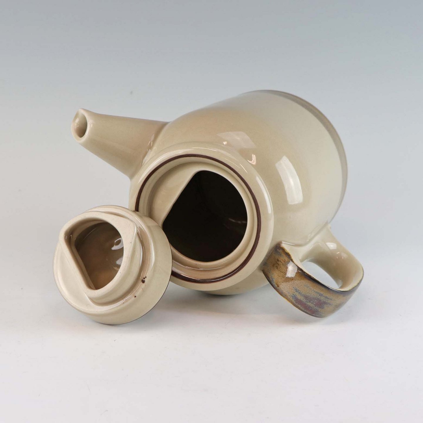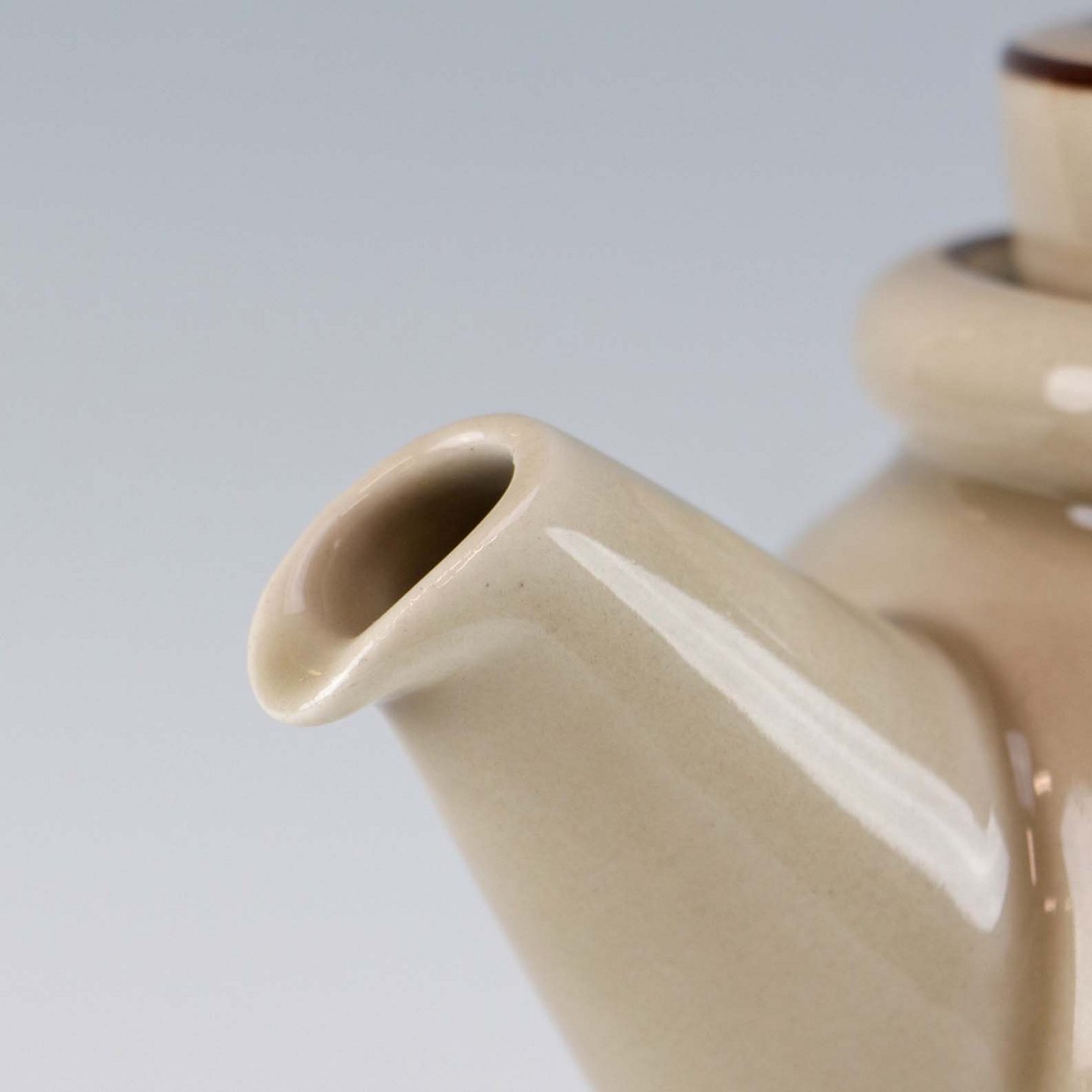 Stellet Peru er af stentøj, glaseret med lys grå farve og dekoreret med bånd af grøn/brunlige farve