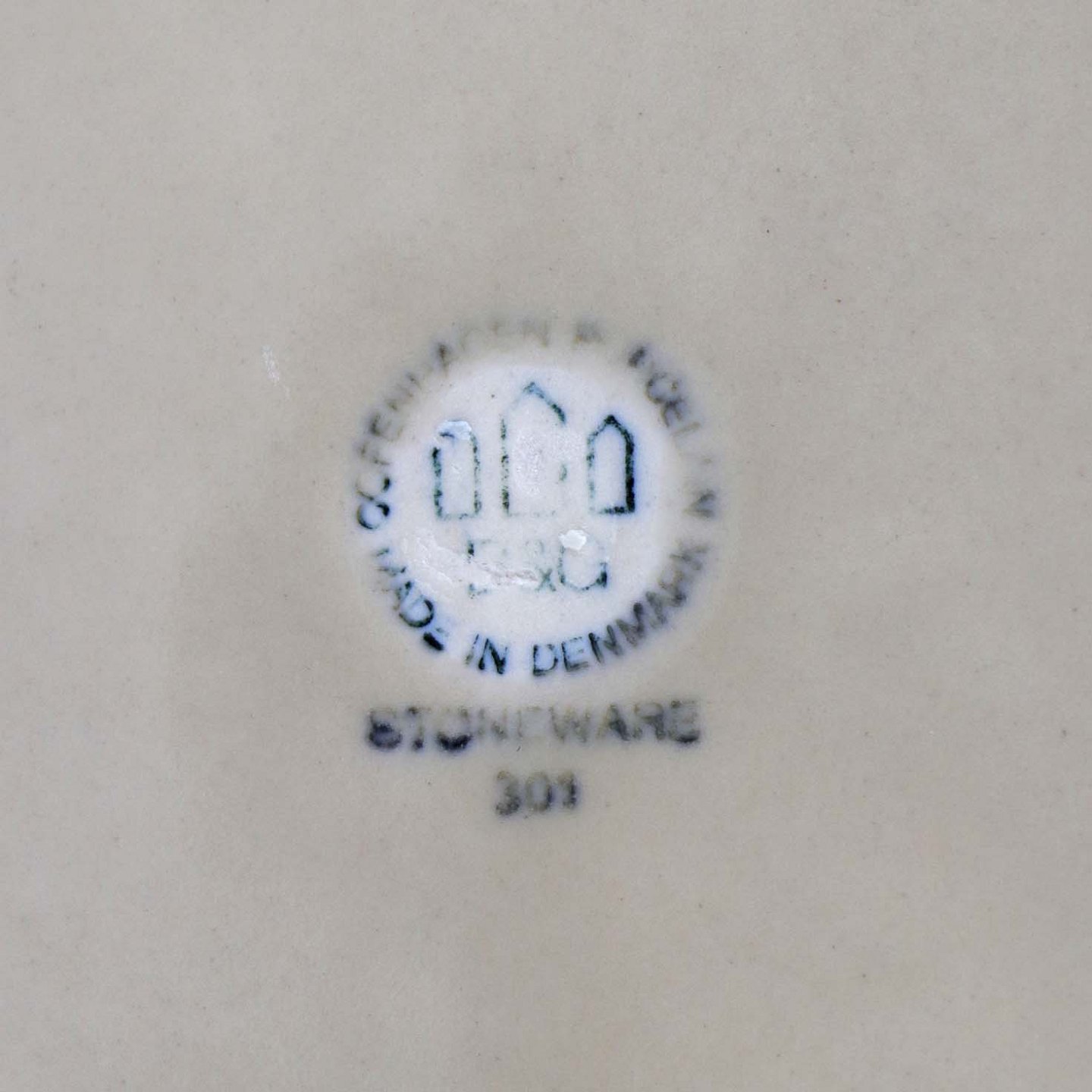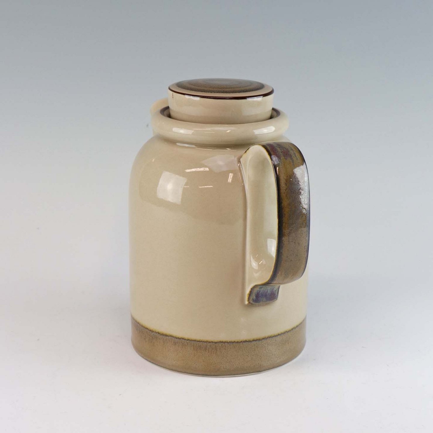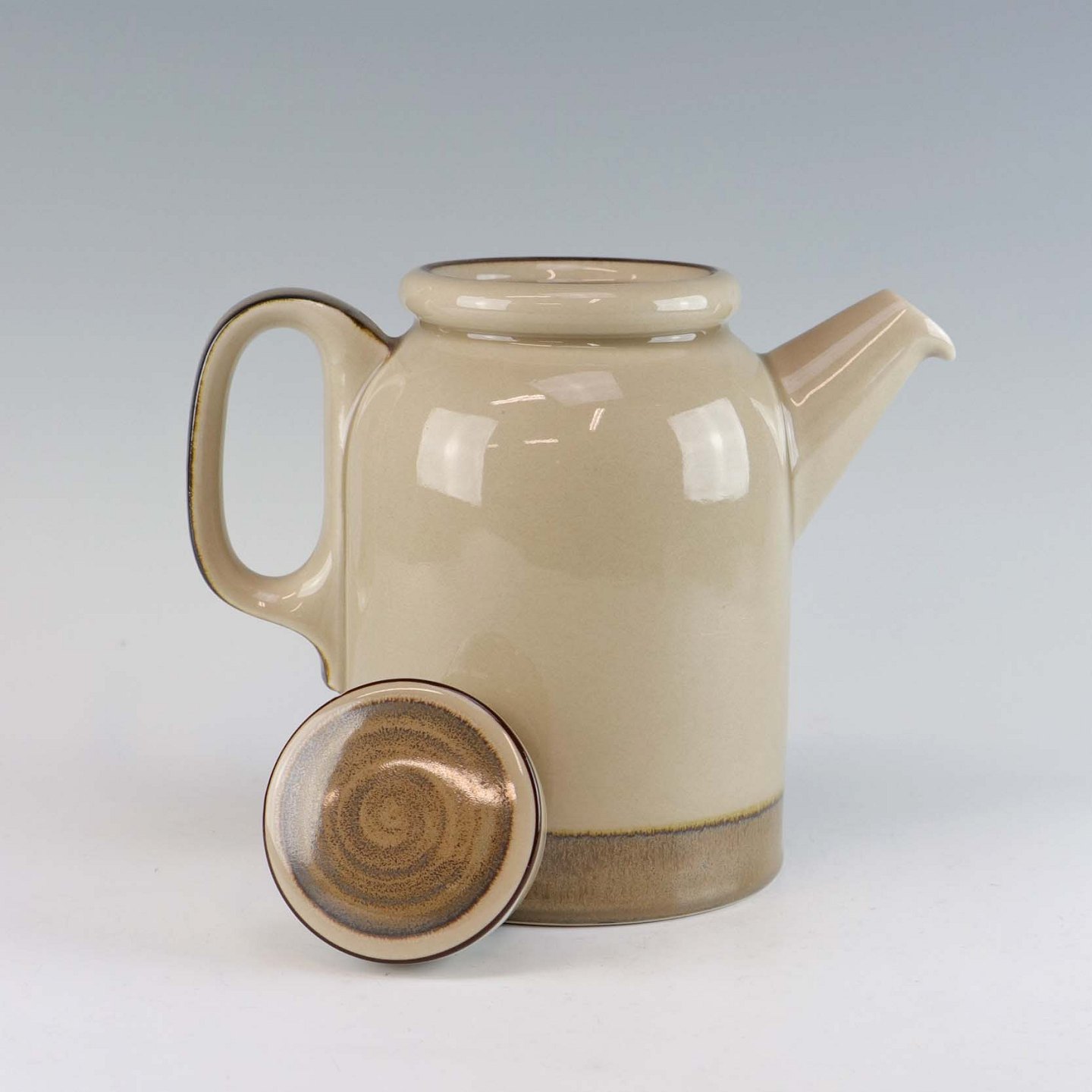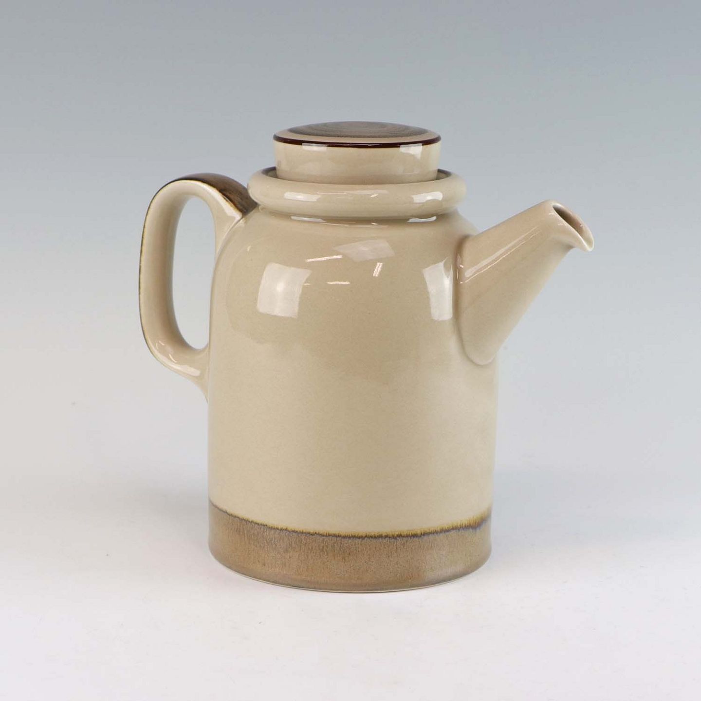 Stellet Peru er af stentøj, glaseret med lys grå farve og dekoreret med bånd af grøn/brunlige farve