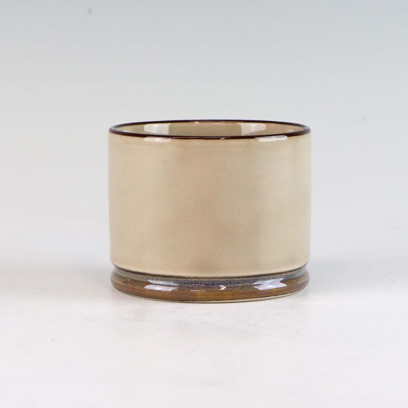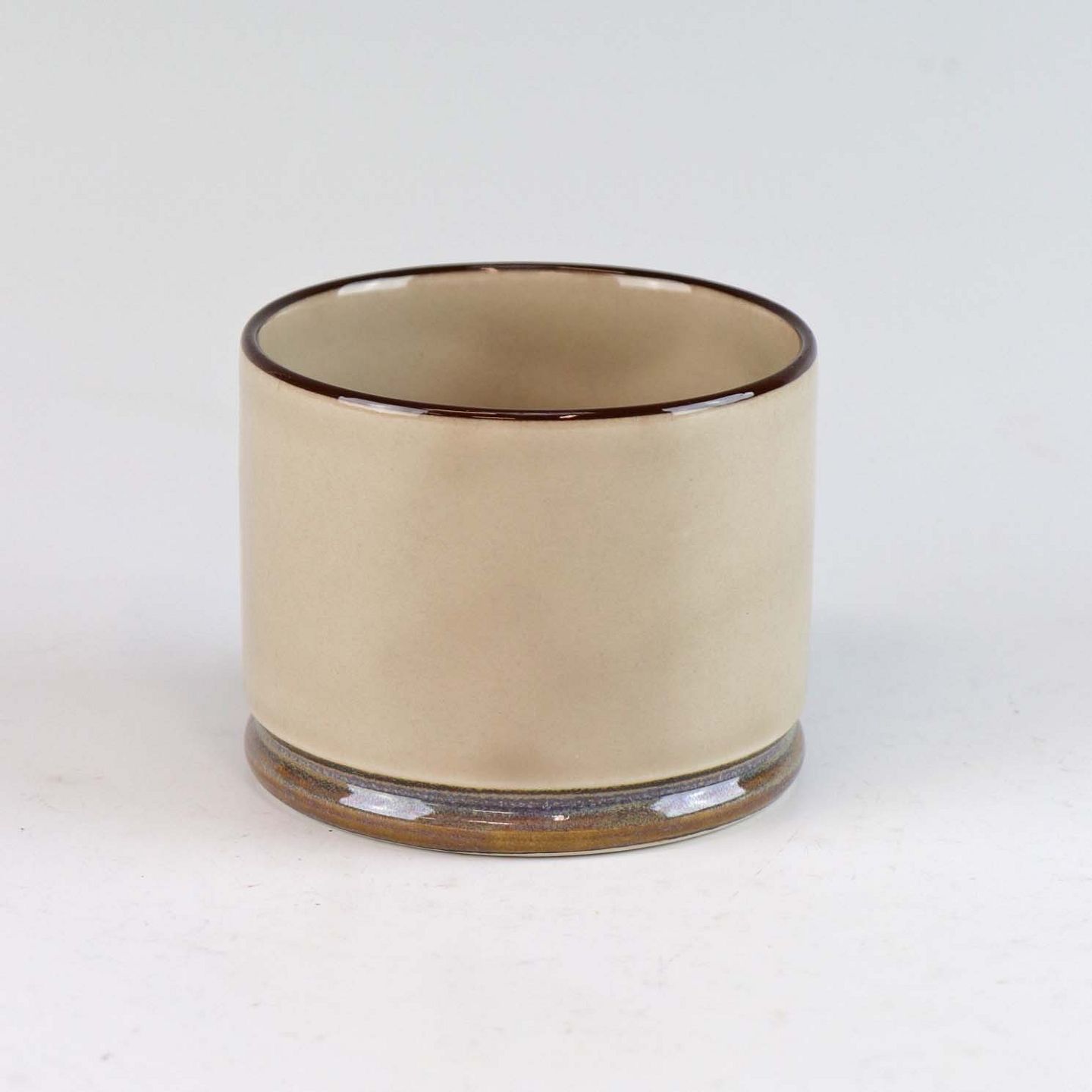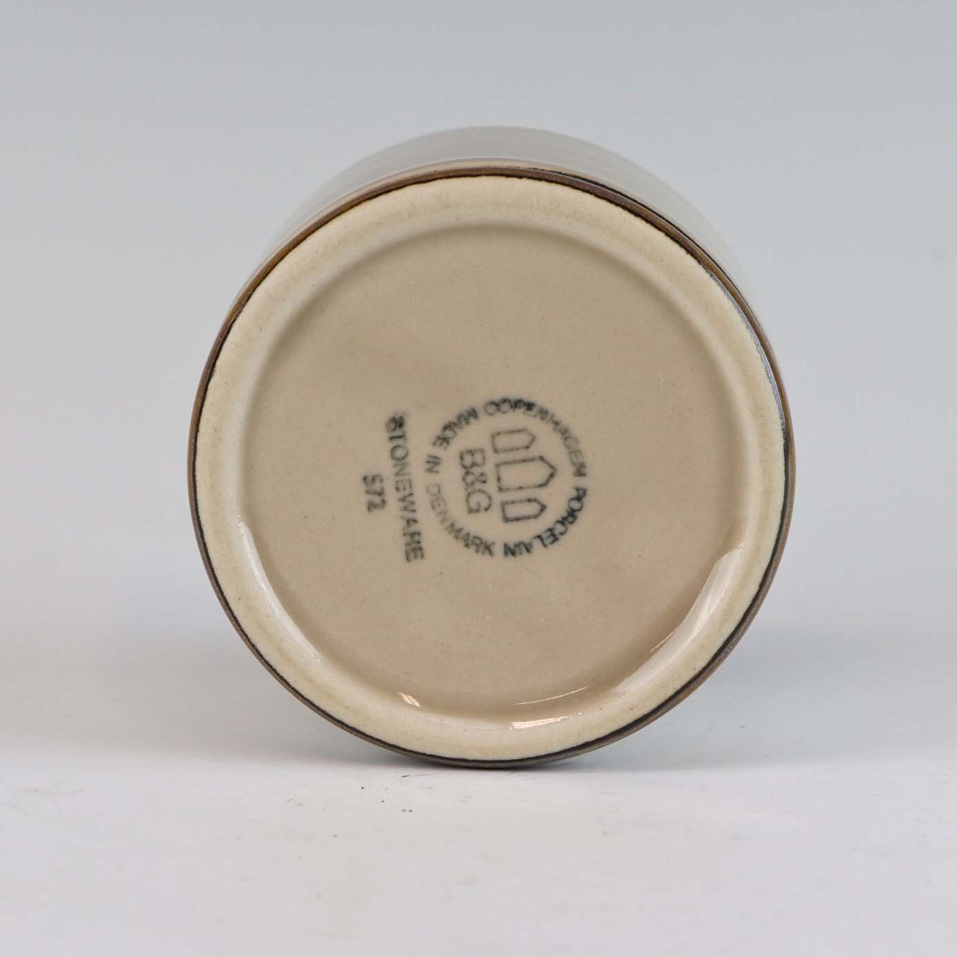 Stellet Peru er af stentøj, glaseret med lys grå farve og dekoreret med bånd af grøn/brunlige farve