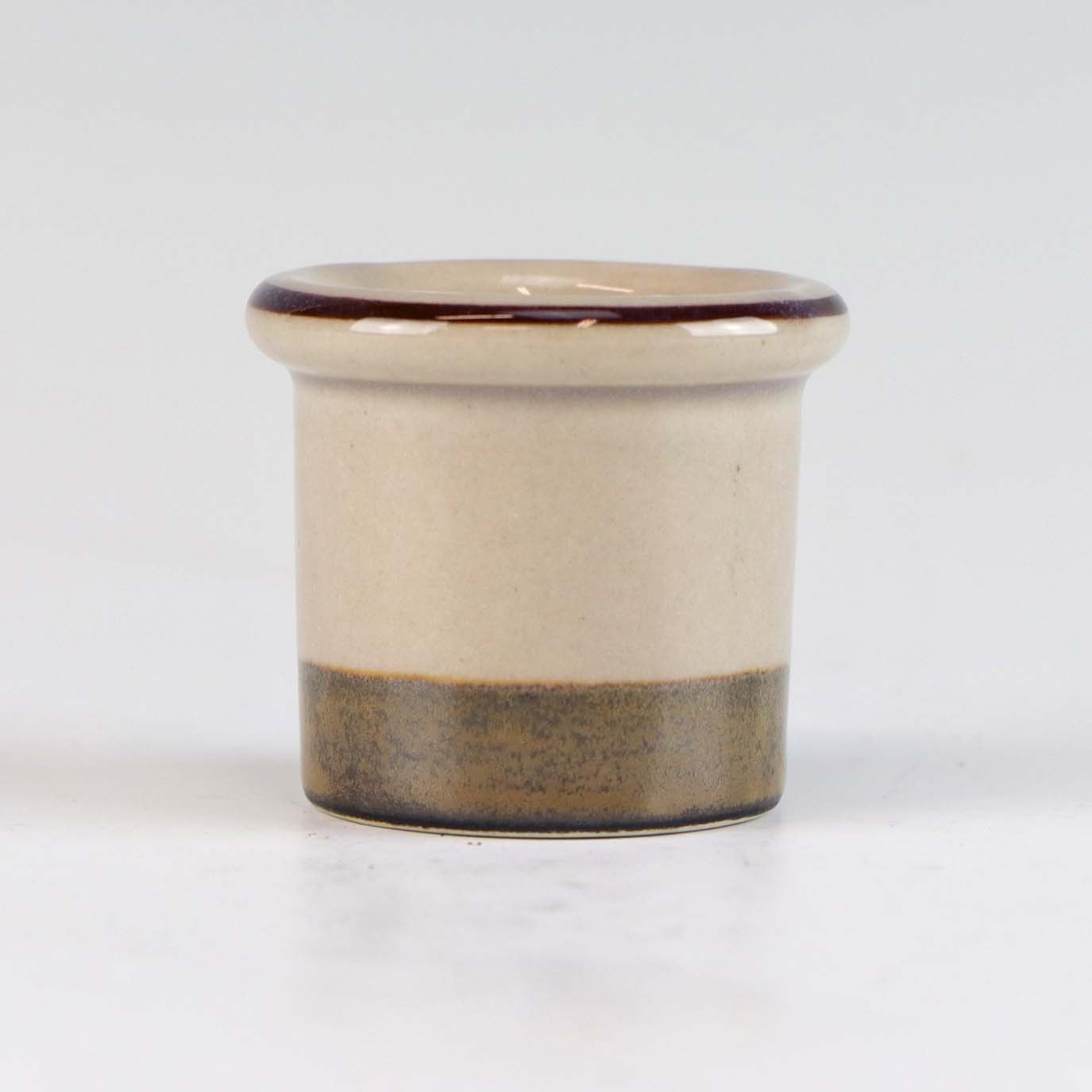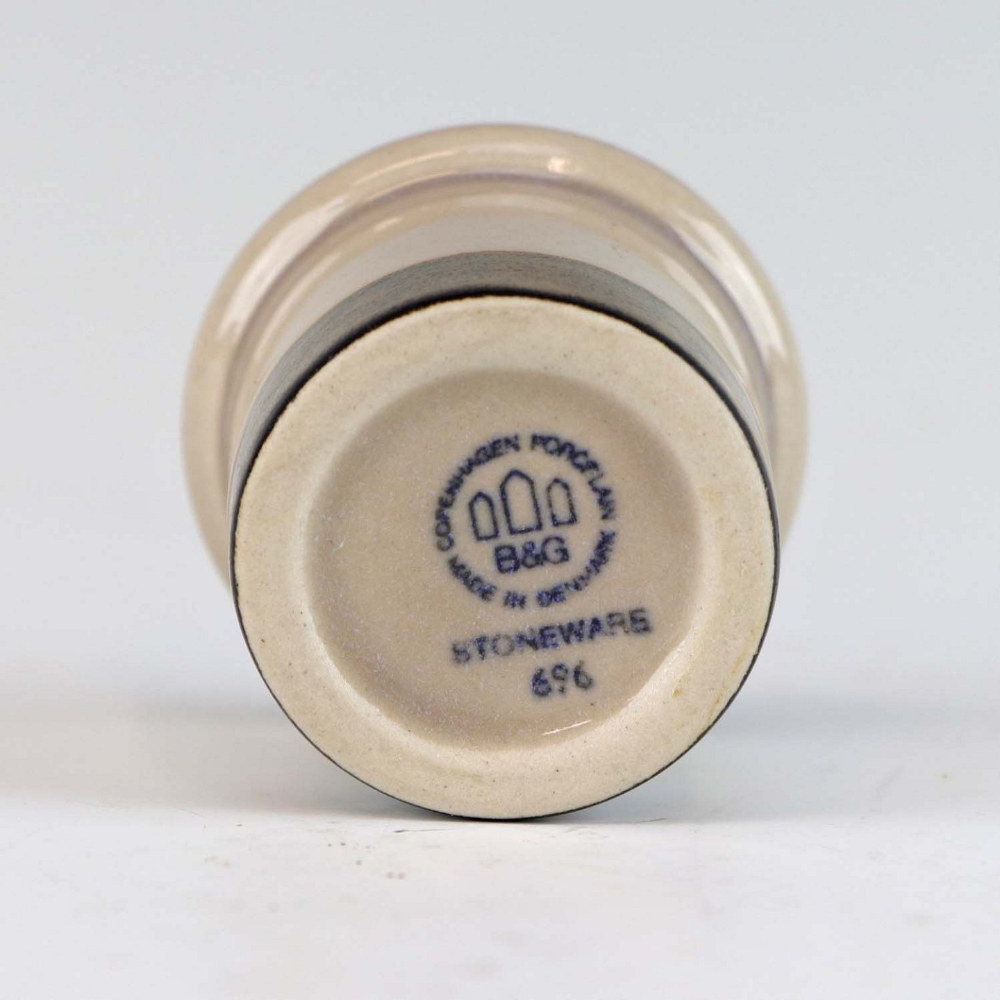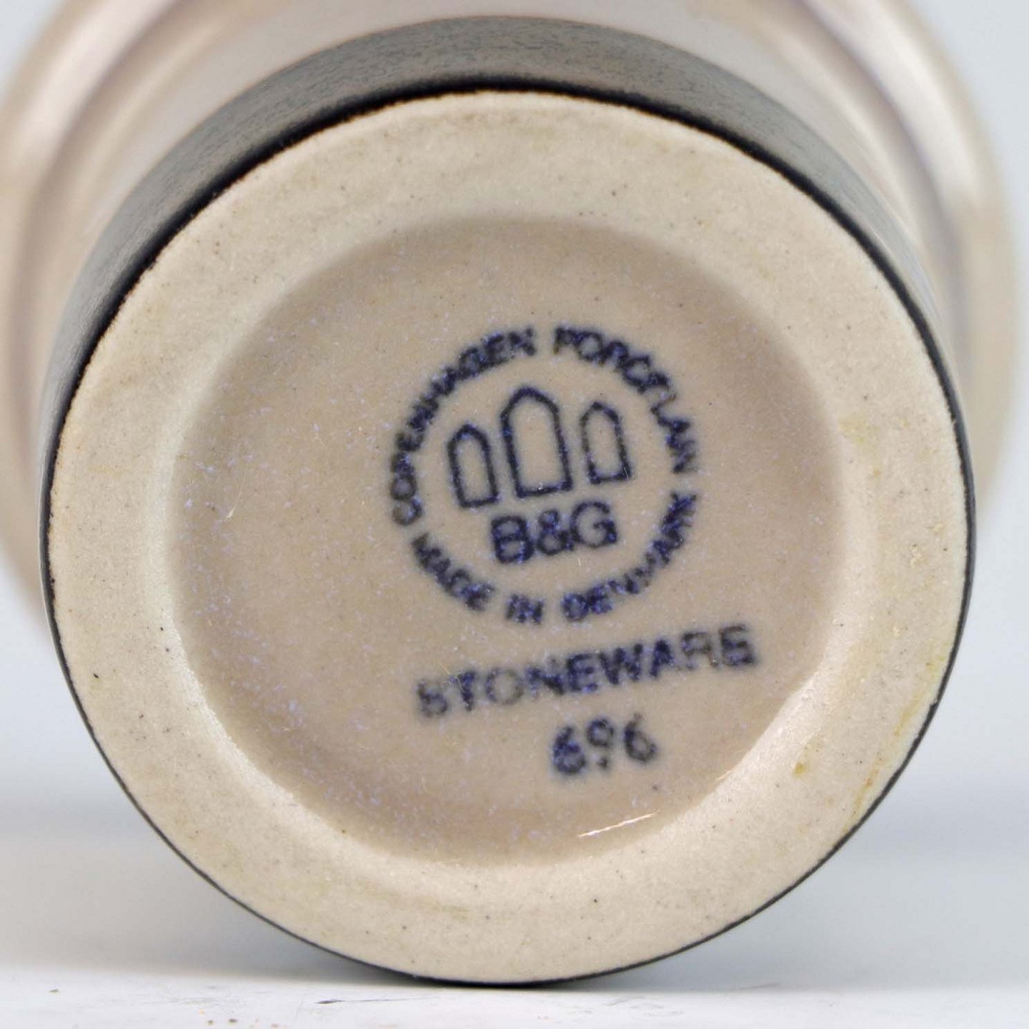 Stellet Peru er af stentøj, glaseret med lys grå farve og dekoreret med bånd af grøn/brunlige farve
