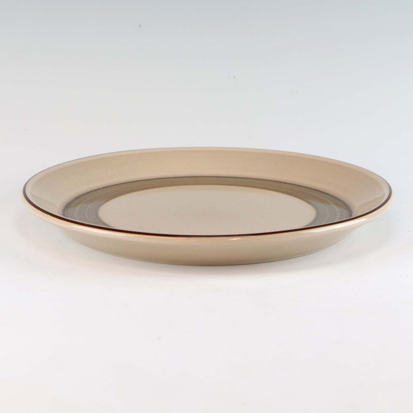 Stellet Peru er af stentøj, glaseret med lys grå farve og dekoreret med bånd af grøn/brunlige farve