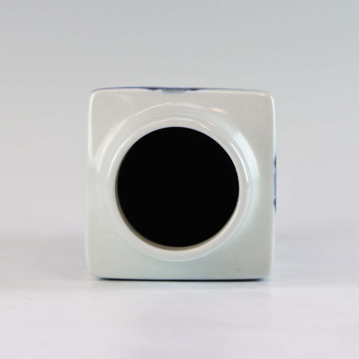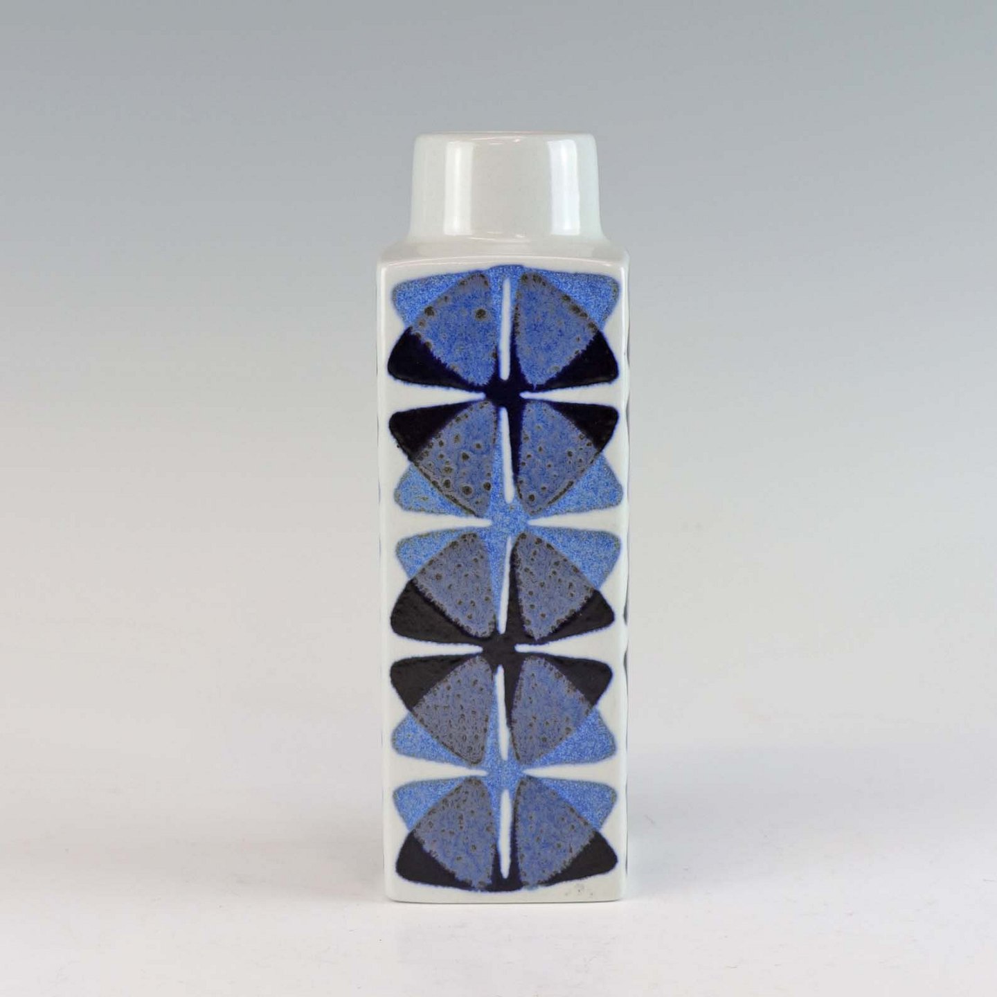 Fajance vase Baca no 661/3455. Kvadratisk med mønster i blå og sorte farver