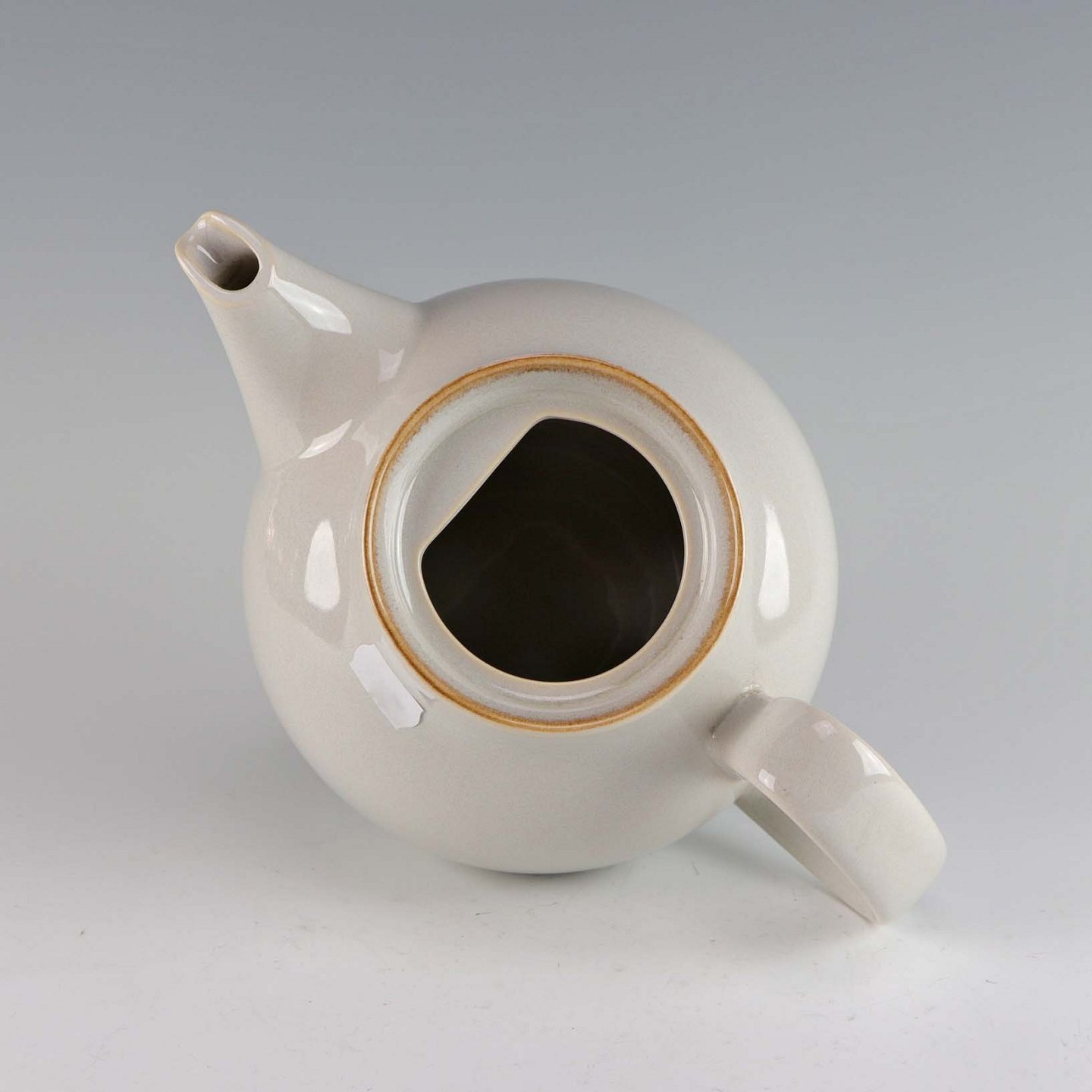 Stellet Coppelia er glaseret hvidt stentøj, dekoreret med kanter af lys brun farve