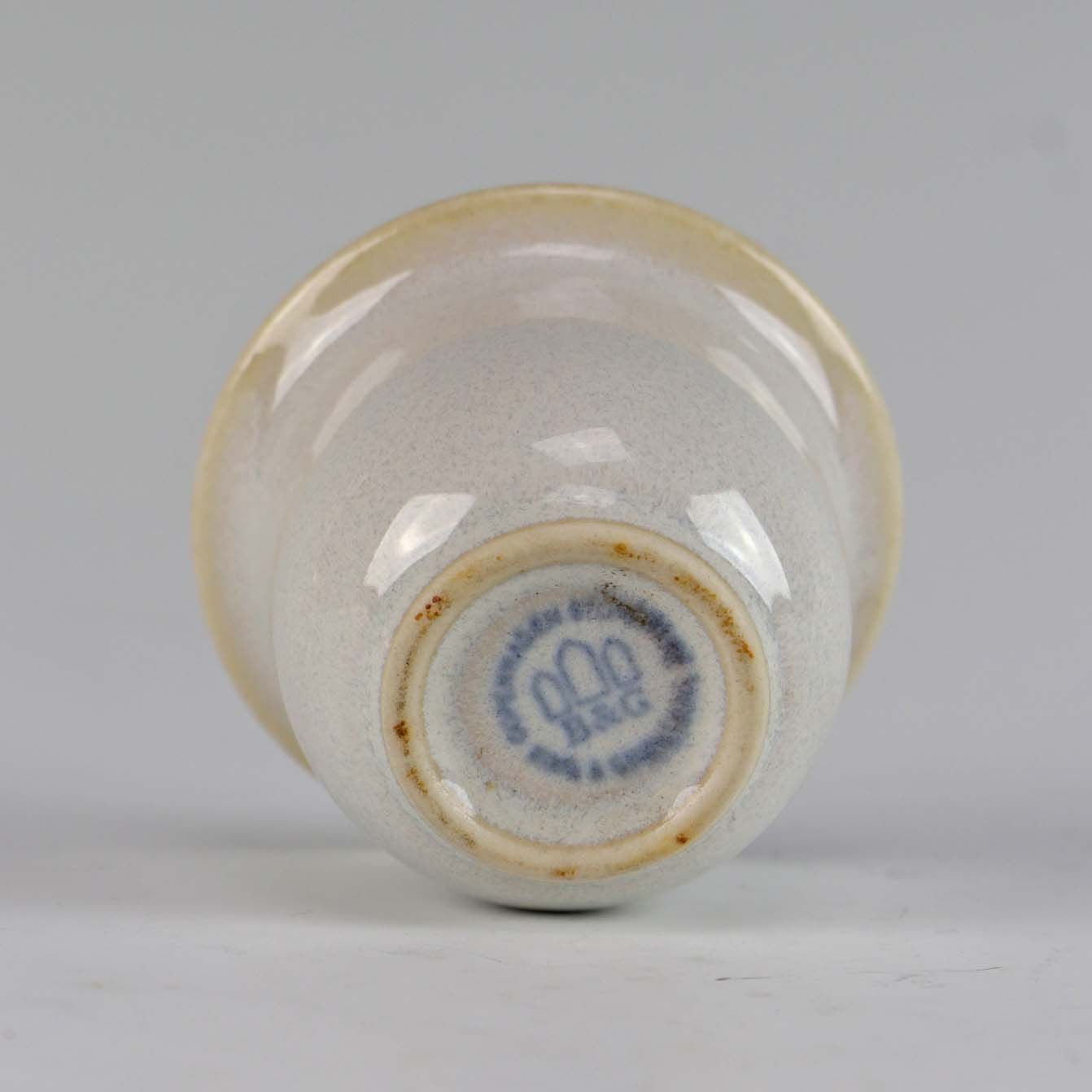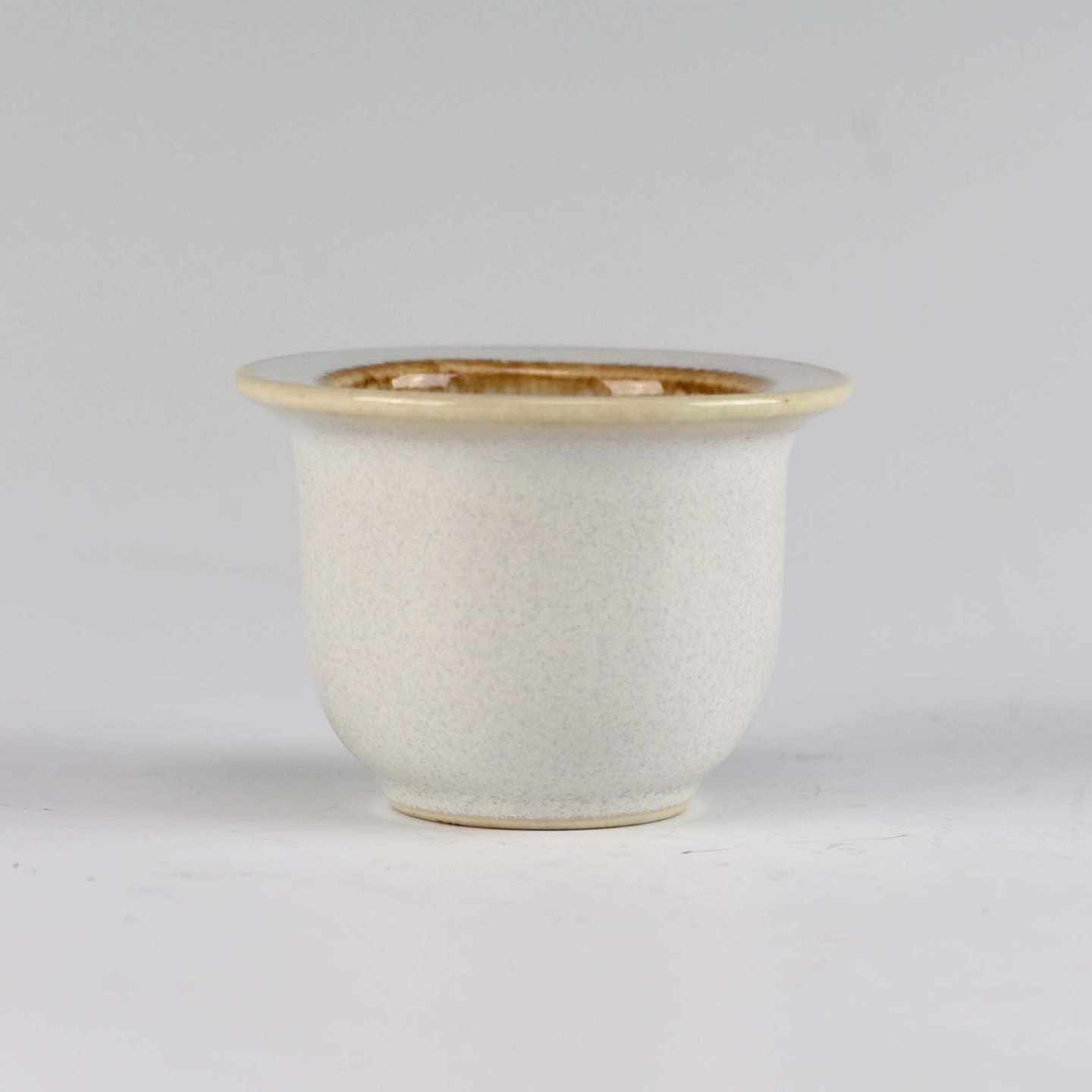 Stellet Coppelia er glaseret hvidt stentøj, dekoreret med kanter af lys brun farve