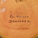 Skål af stentøj i blå og brune farver med rødbrune nuancer