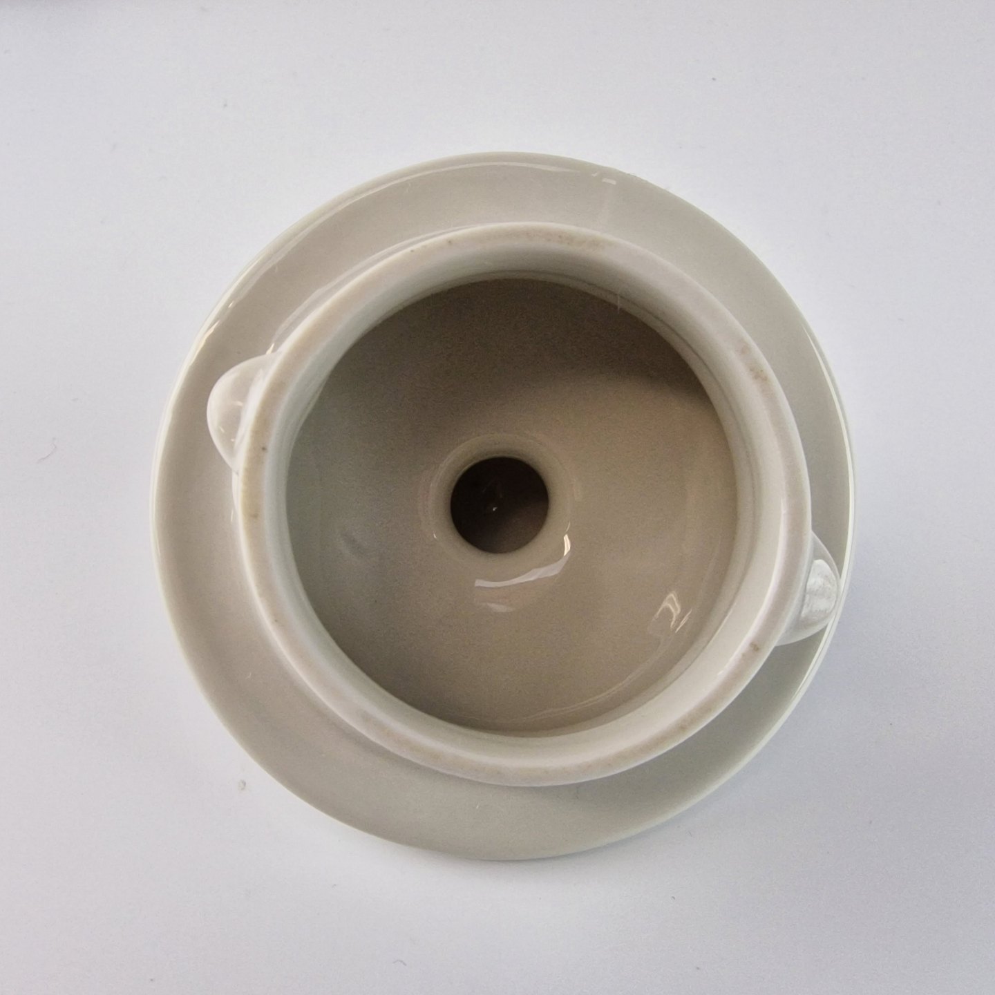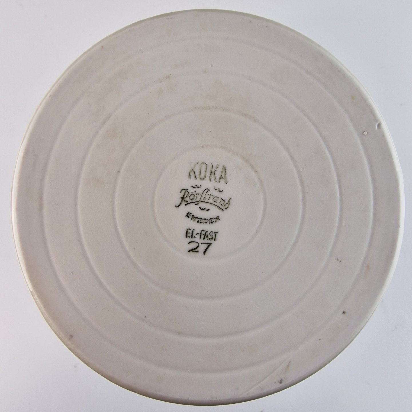 Blå Koka er af hvidt glaseret porcelæn med et bånd af mørk blå