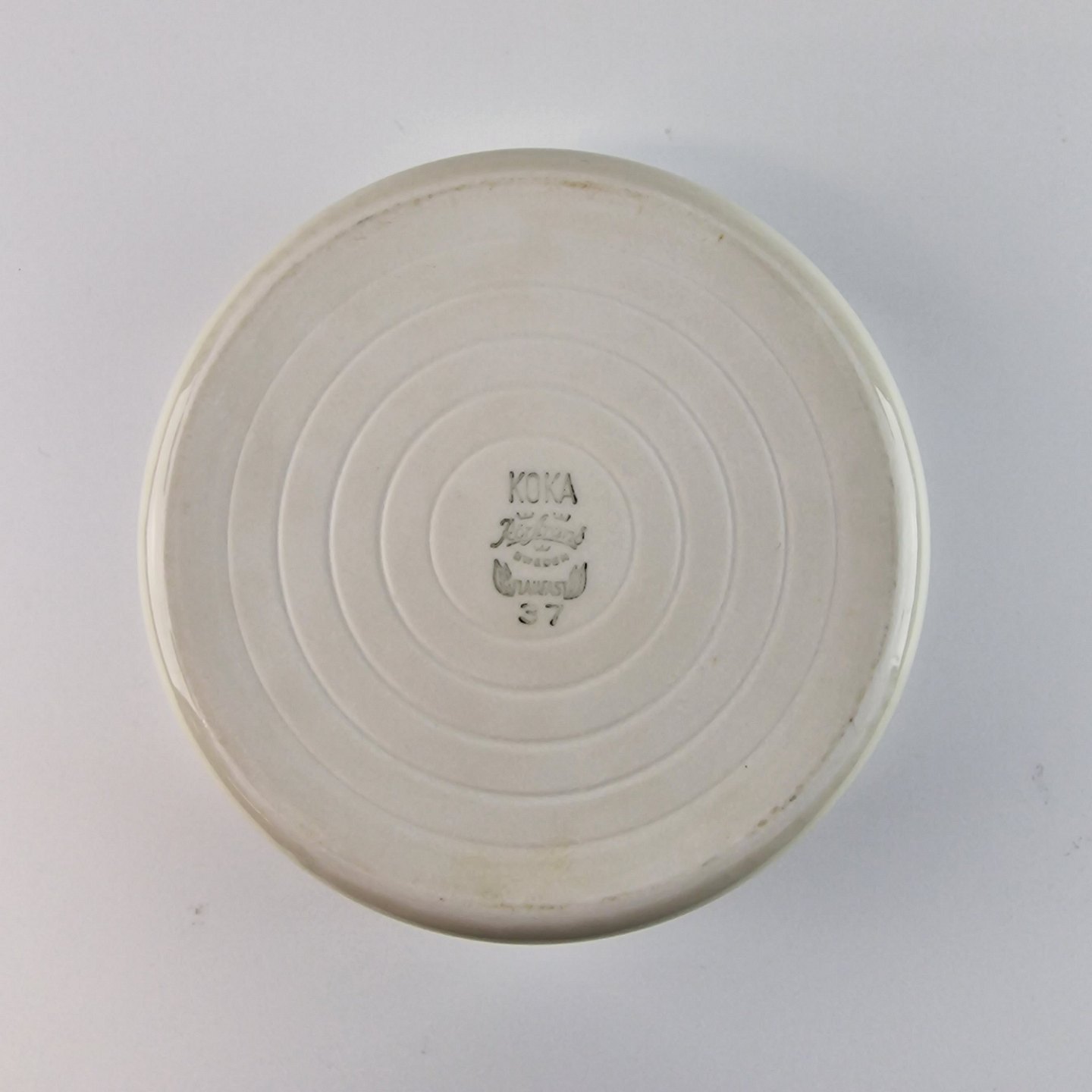 Blå Koka er af hvidt glaseret porcelæn med et bånd af mørk blå