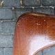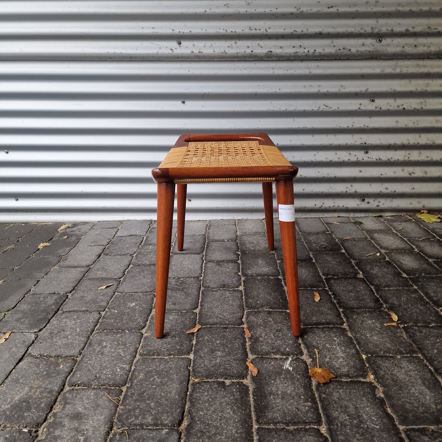 Wegner skammel. Stel af mørkt træ. Sæde med flet af peddigrør/Rathan. Der er 2 små fejl på flet, men fremstår originalt, med design mærke.