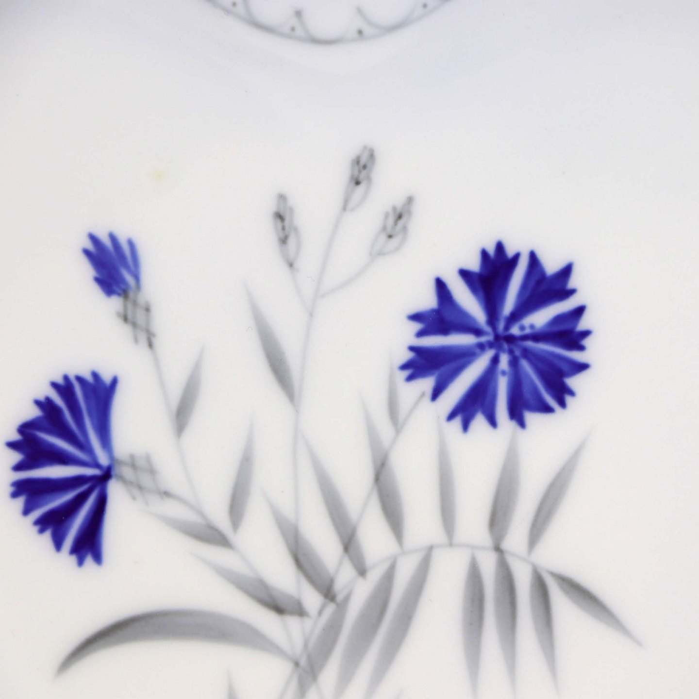 Demeter er af hvidt porcelæn med graduering af blå i kanten og med motiv af kornblomst