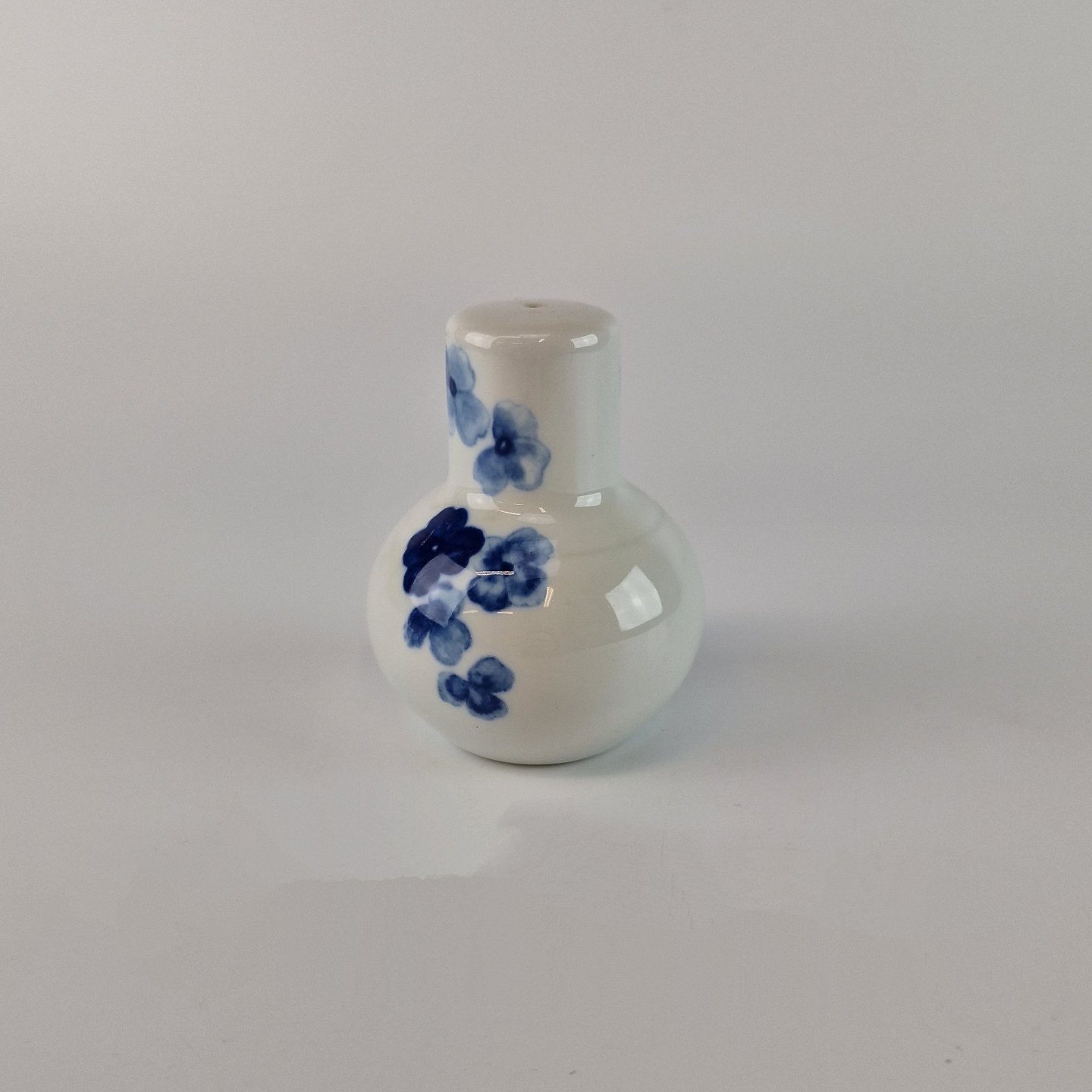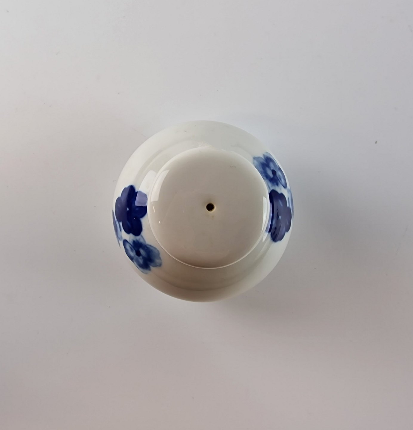 Troja er af kraftigt hvidt porcelæn med mønster af blå blomster