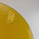 Rundt håndlavet fad med håndtag. Fremstillet af gult glas