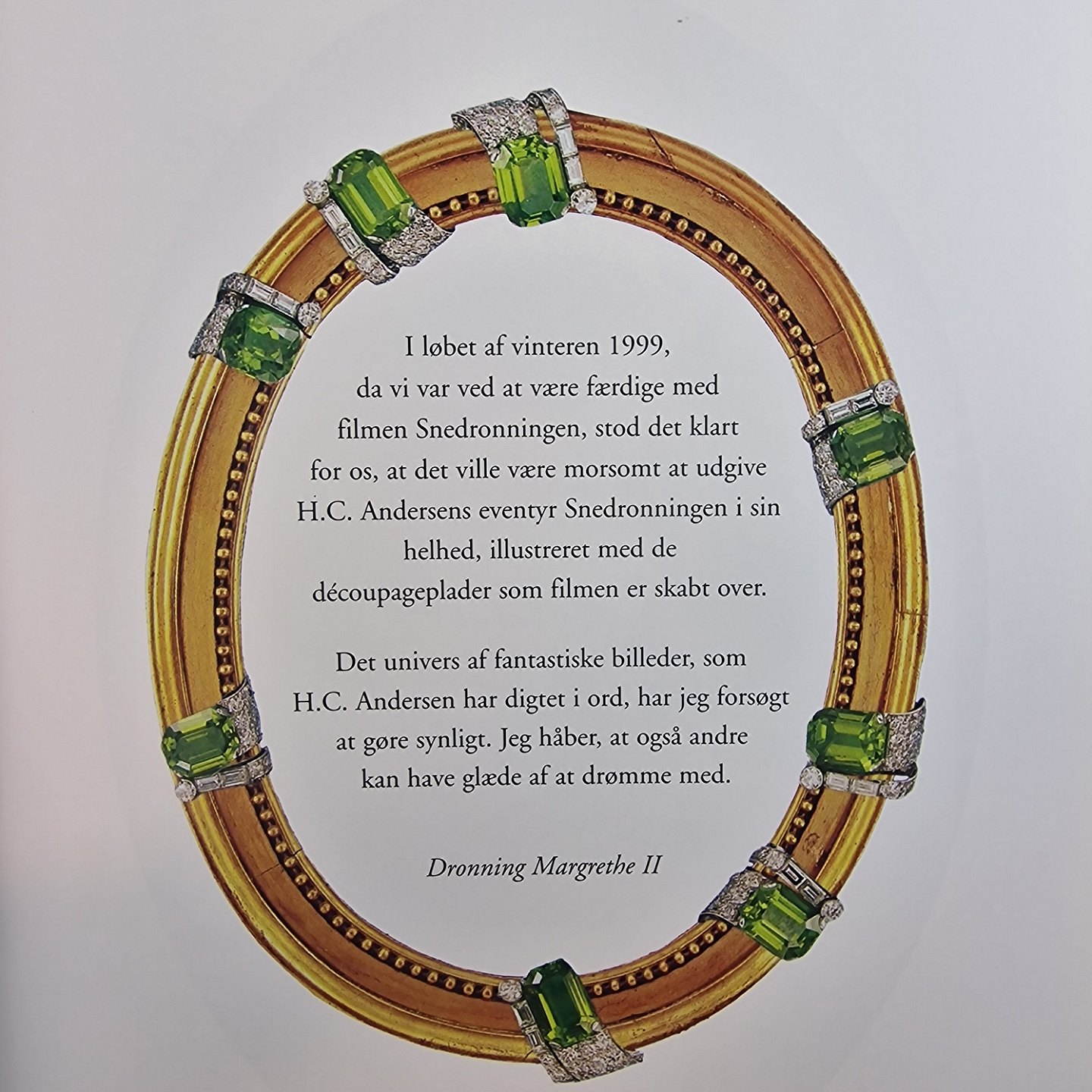 Bog med eventyret Snedronningen. Bogen er med billeder af dronning Margrethe II's découpager til eventyrfilmen Snedronningen fra år 2000