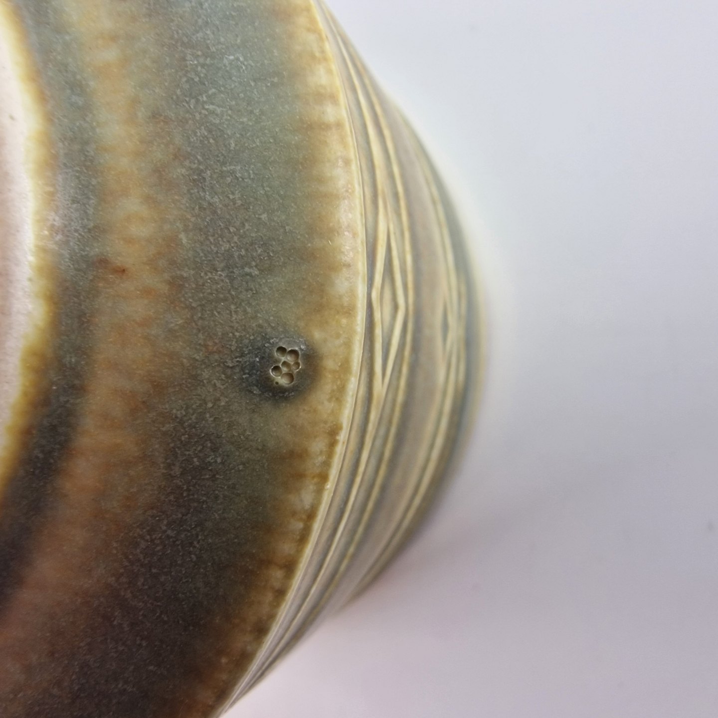 Stellet Rune er glaseret i grønne og råhvide farver med en brun kant