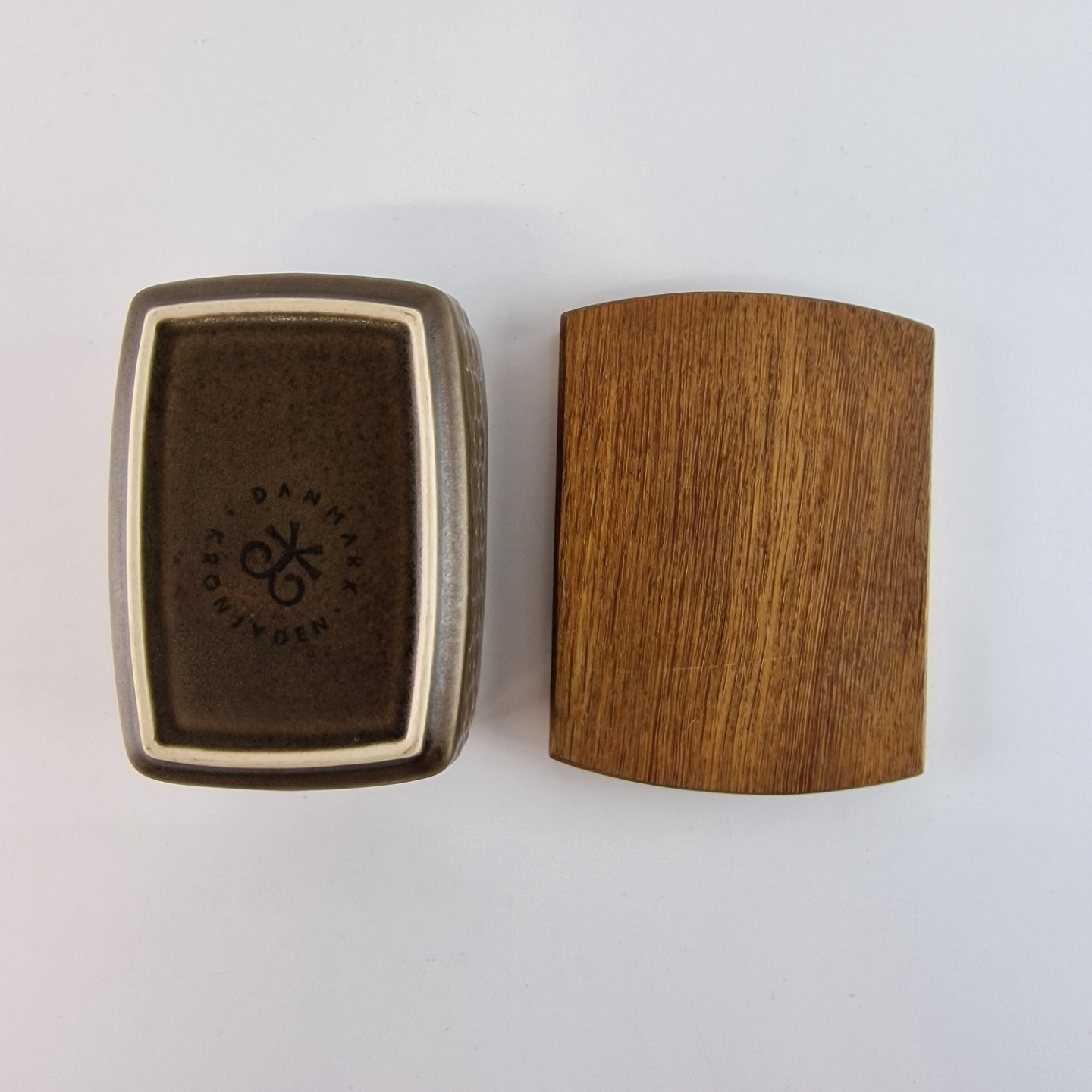 Smørskål i stentøj med trælåg fra stellet Umbra