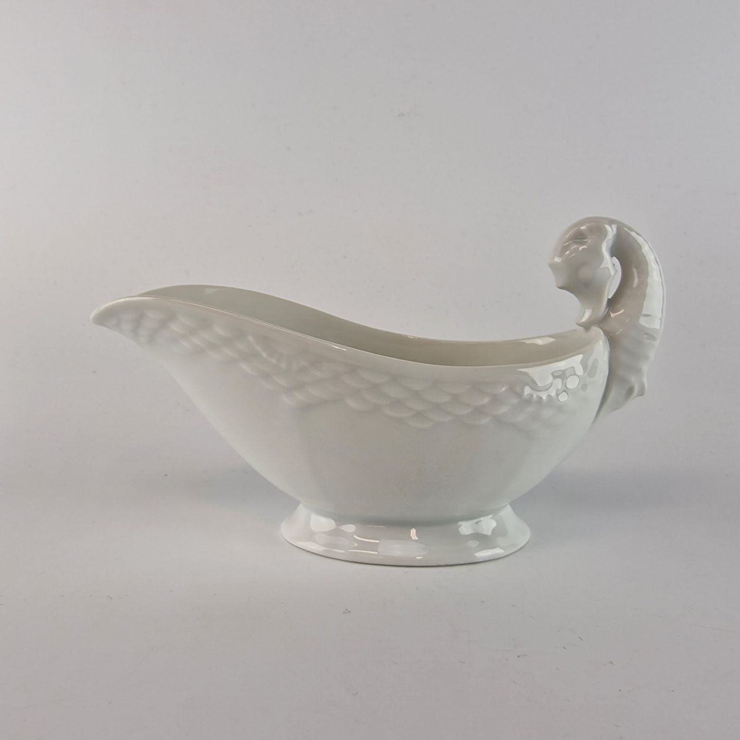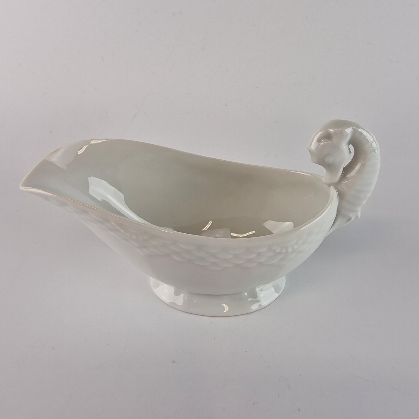 Elegance er hvidt glaseret porcelæn med et skæl lignende mønster