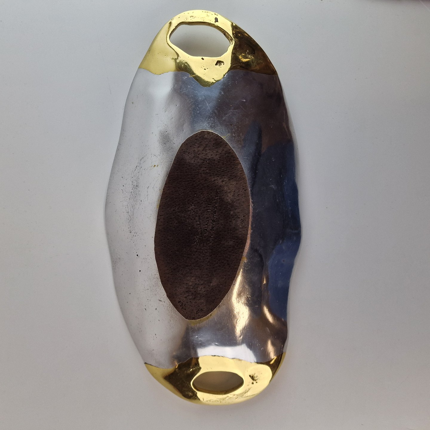 Stort abstrakt metalfad, håndstøbt i massiv aluminium med indstøbte messinghåndtag