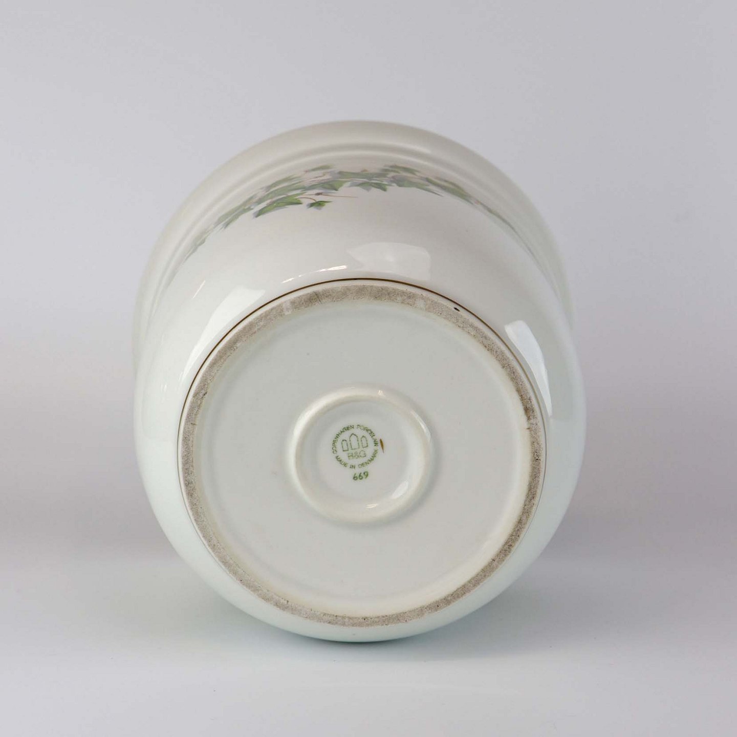 Urtepotteskjuler med motiv af efeu og med guldkant. No 669
