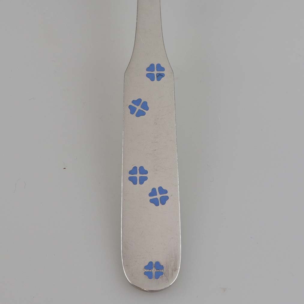 Barneske i sterling sølv med indlagte firkløvere i lyseblå emalje