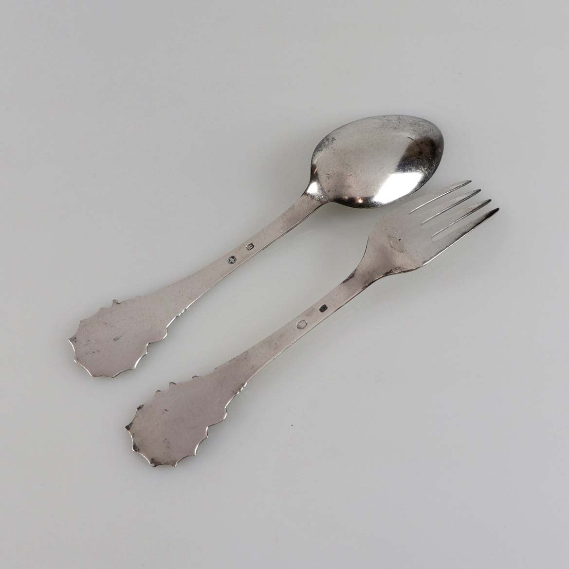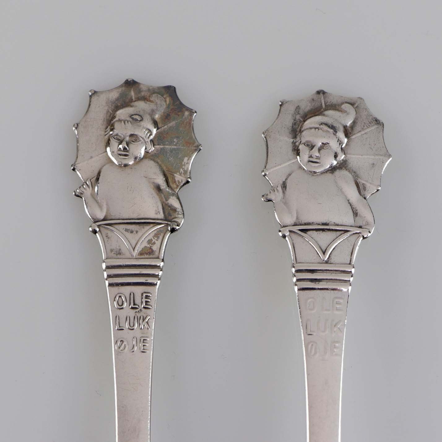 Barneske og barnegaffel i 830 sølv med motiv af Ole Lukøje