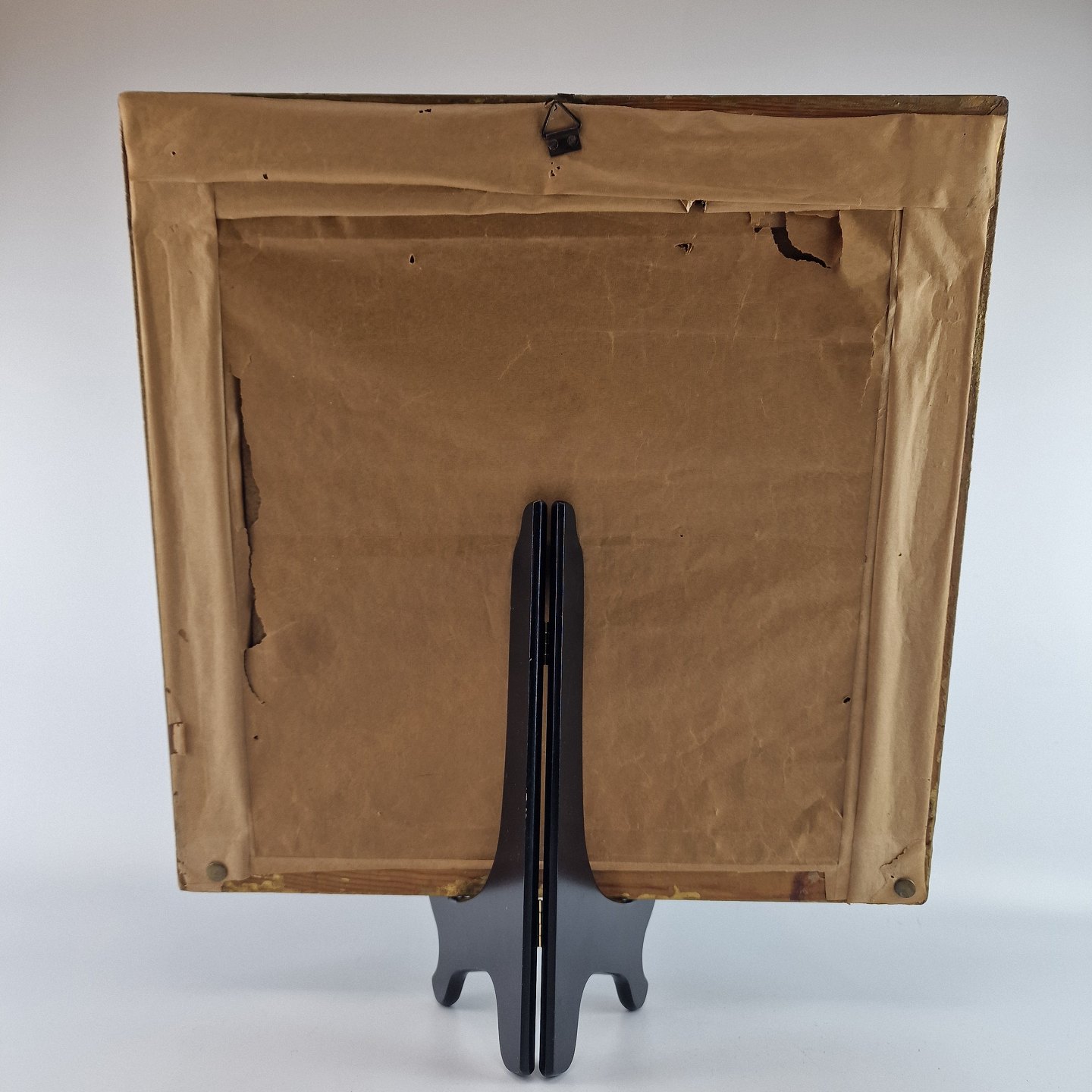 Maleri på plade med motiv af en kvinde ved en å. Dateret 10/3 1910 og med teksten Bredstedt a Bach