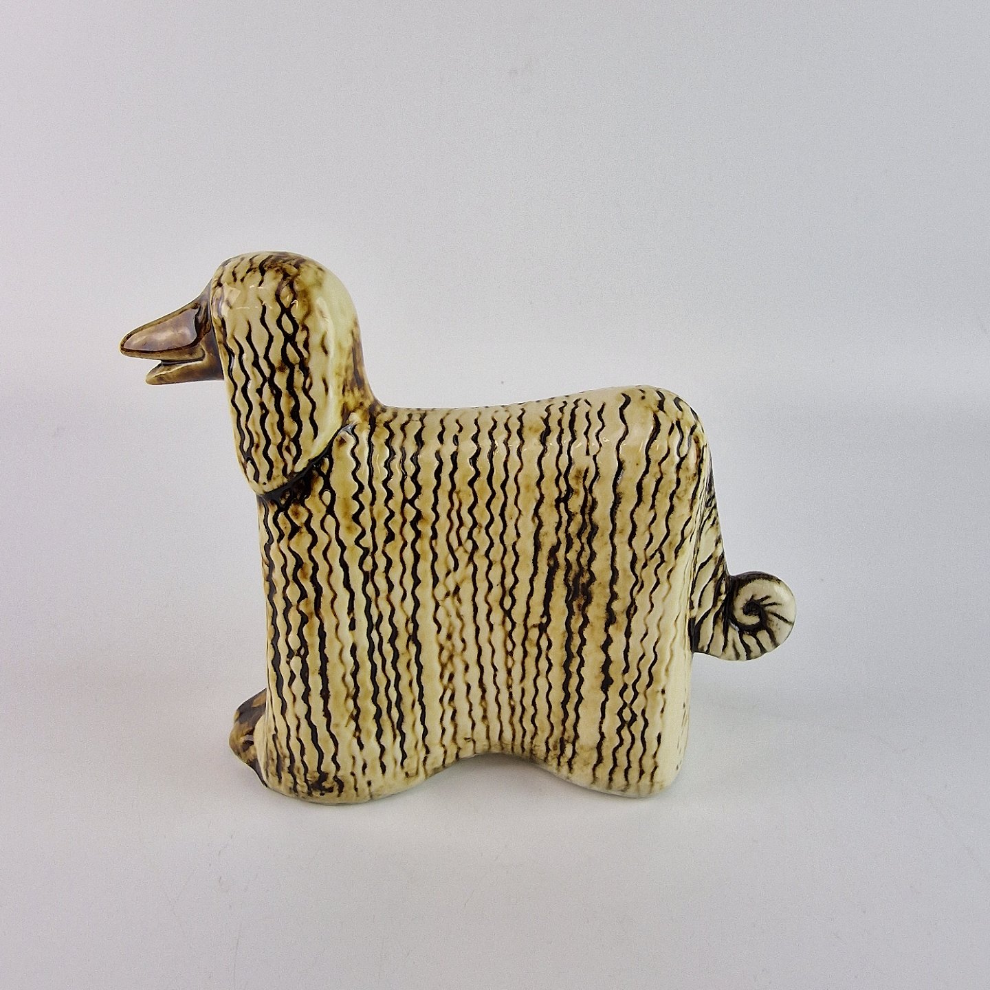Keramikfigur af en afghansk hund med hånddekoreret detaljer. Figurens navn er Afghan og er fra serien Kennel, designet i 1972