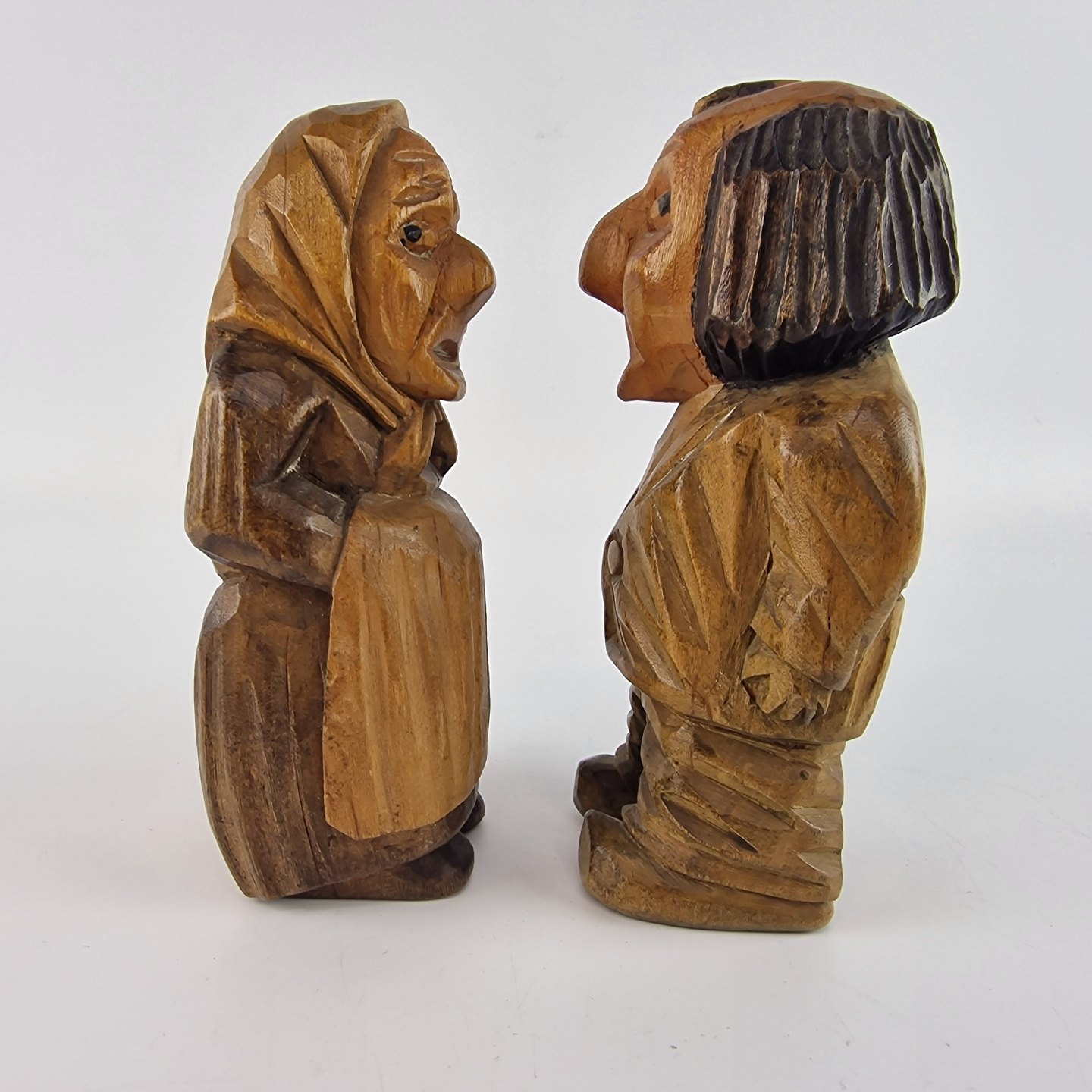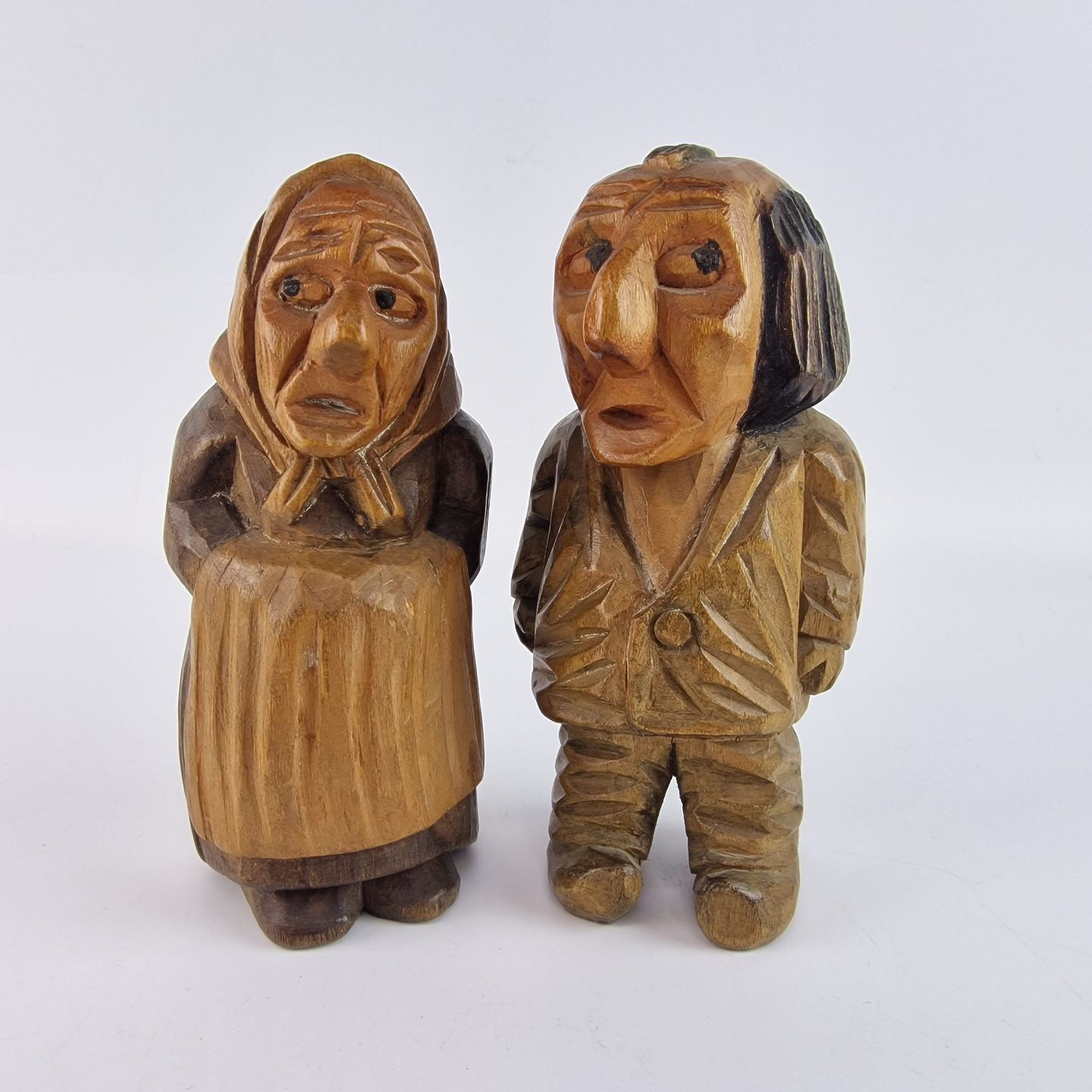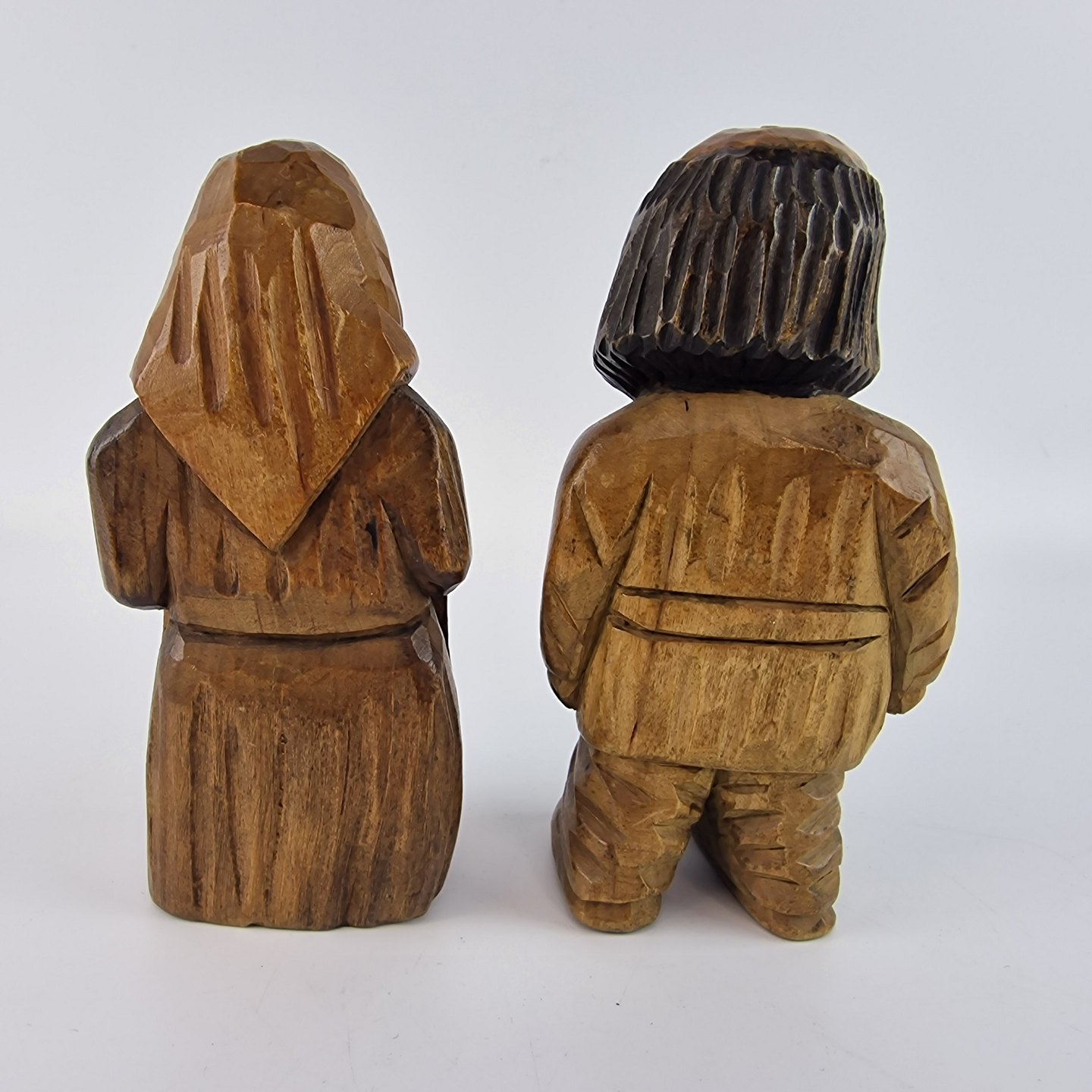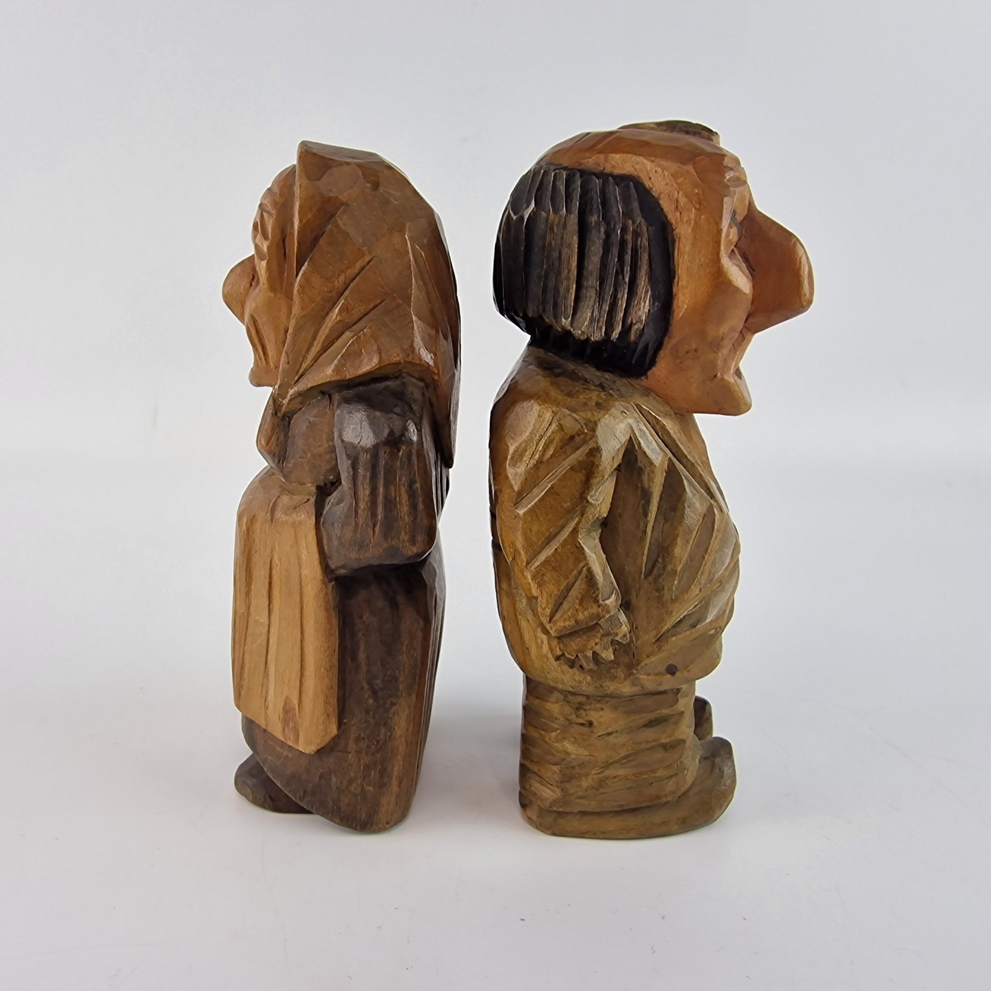 Figurer af træ, der forestiller en kvinde og en mand.