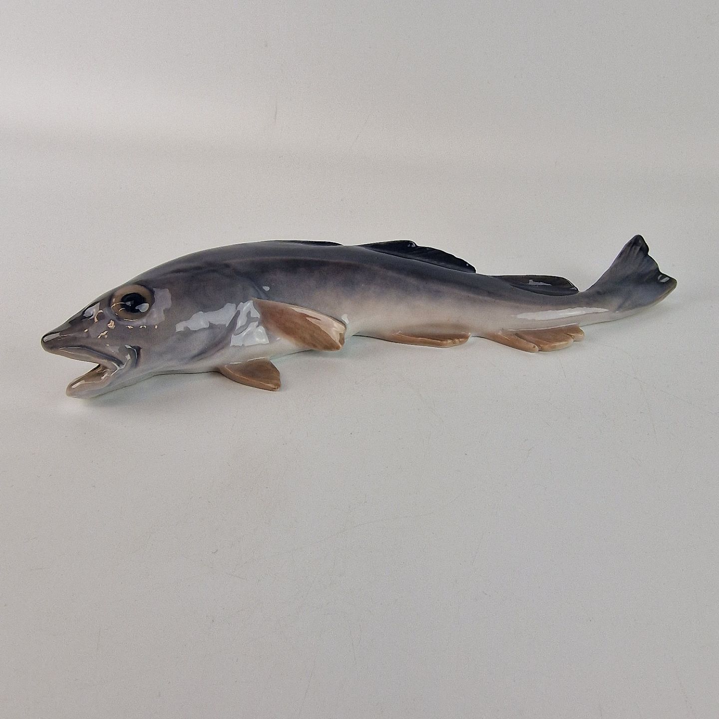 Kongelig håndmalet porcelænsfigur af en torsk. Nr. 457
