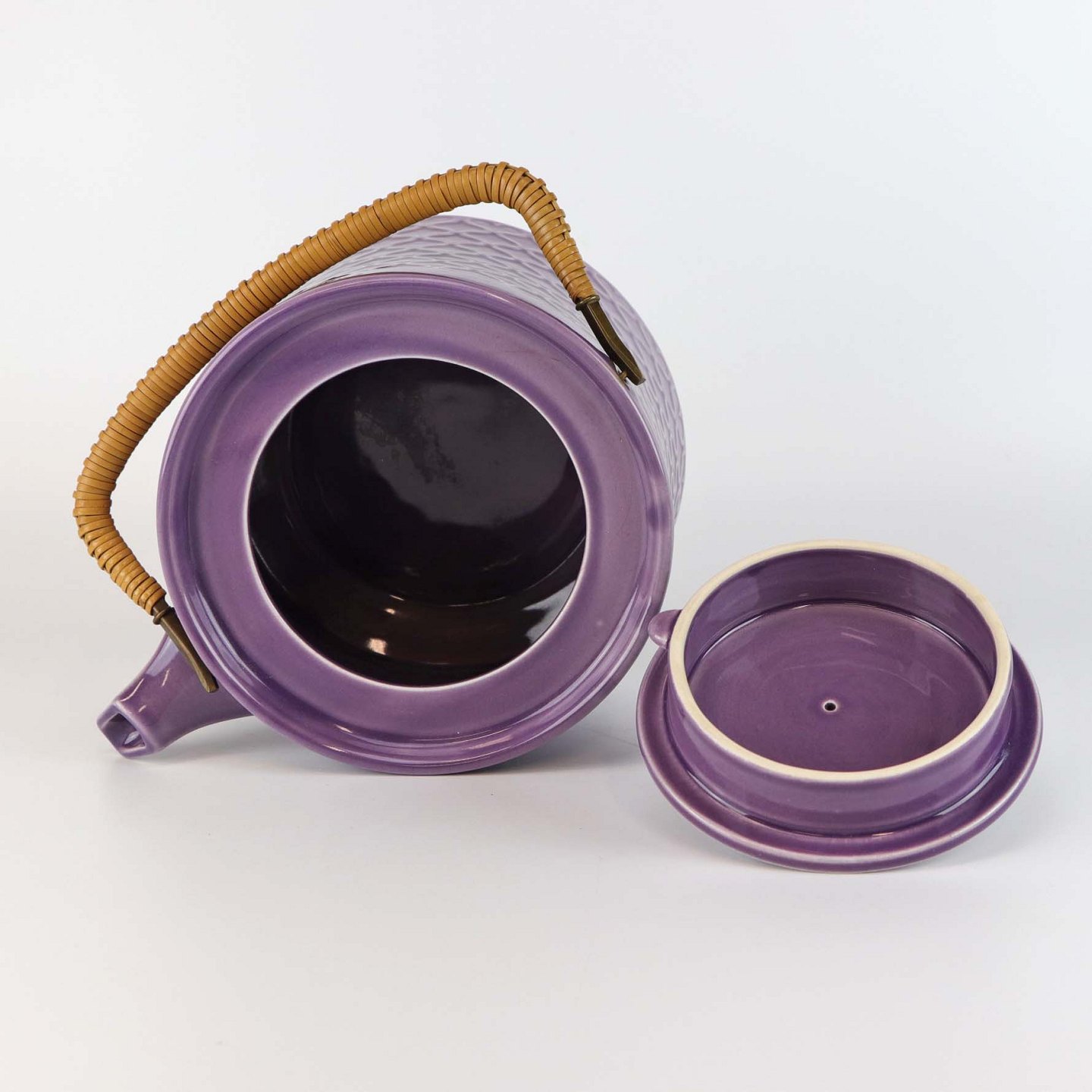 Sjælden tekande i stentøj med hank i messing omgivet af naturflet fra stellet Lilla Cordial no 656