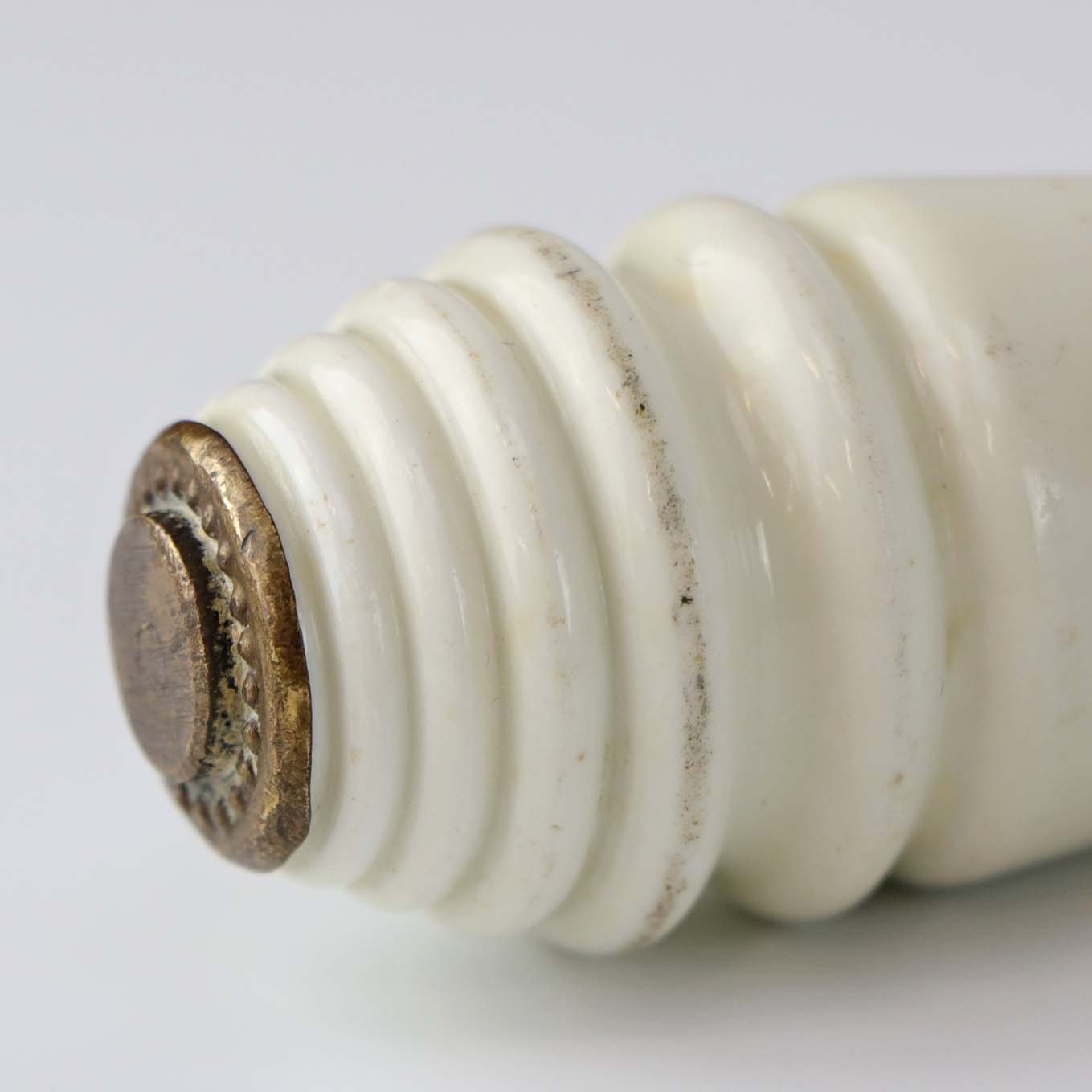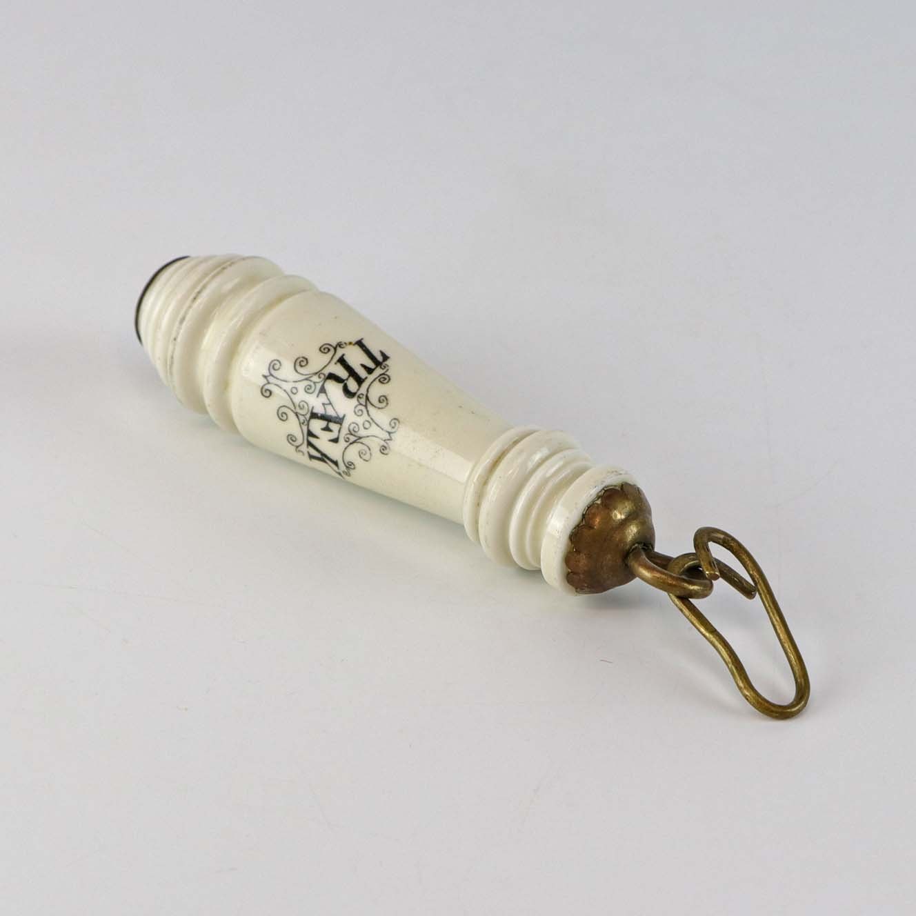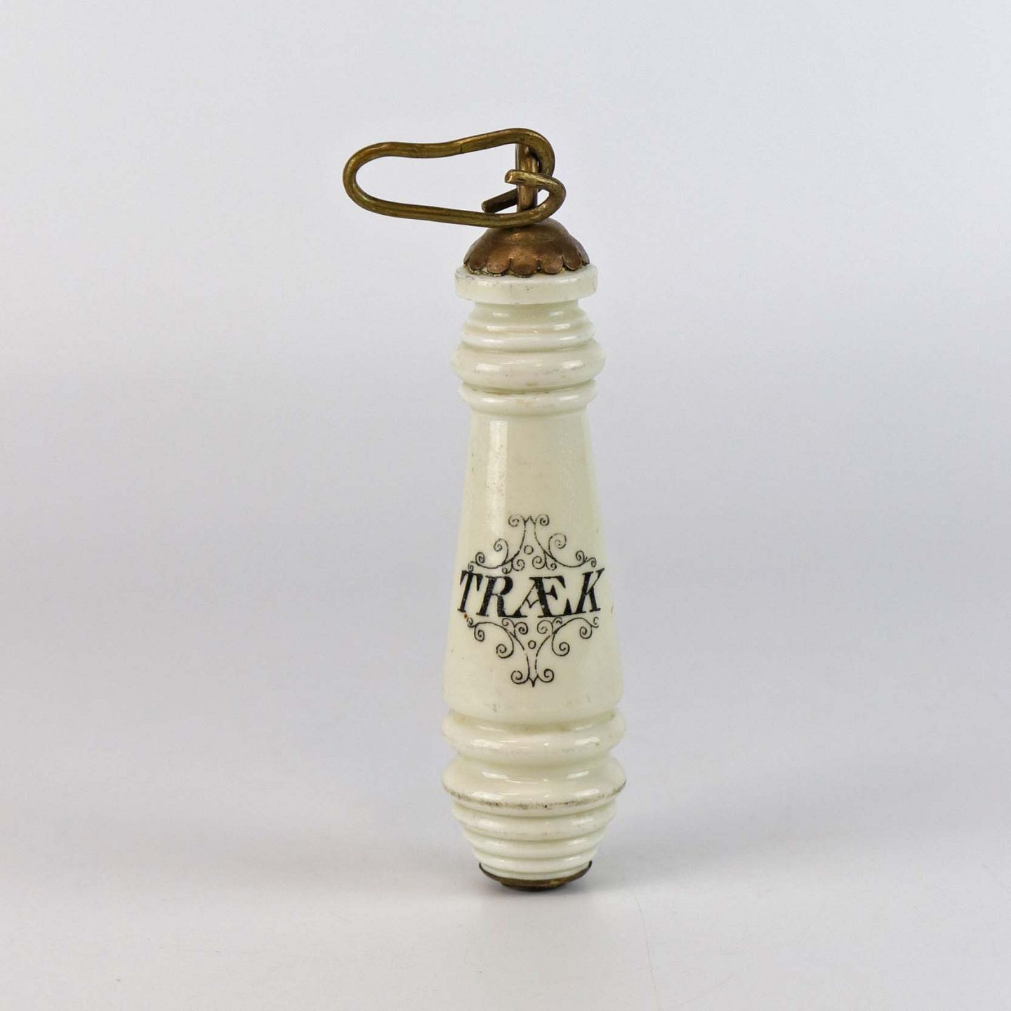 Gammelt håndtag i porcelæn og messing til ældre træk og slip toilet