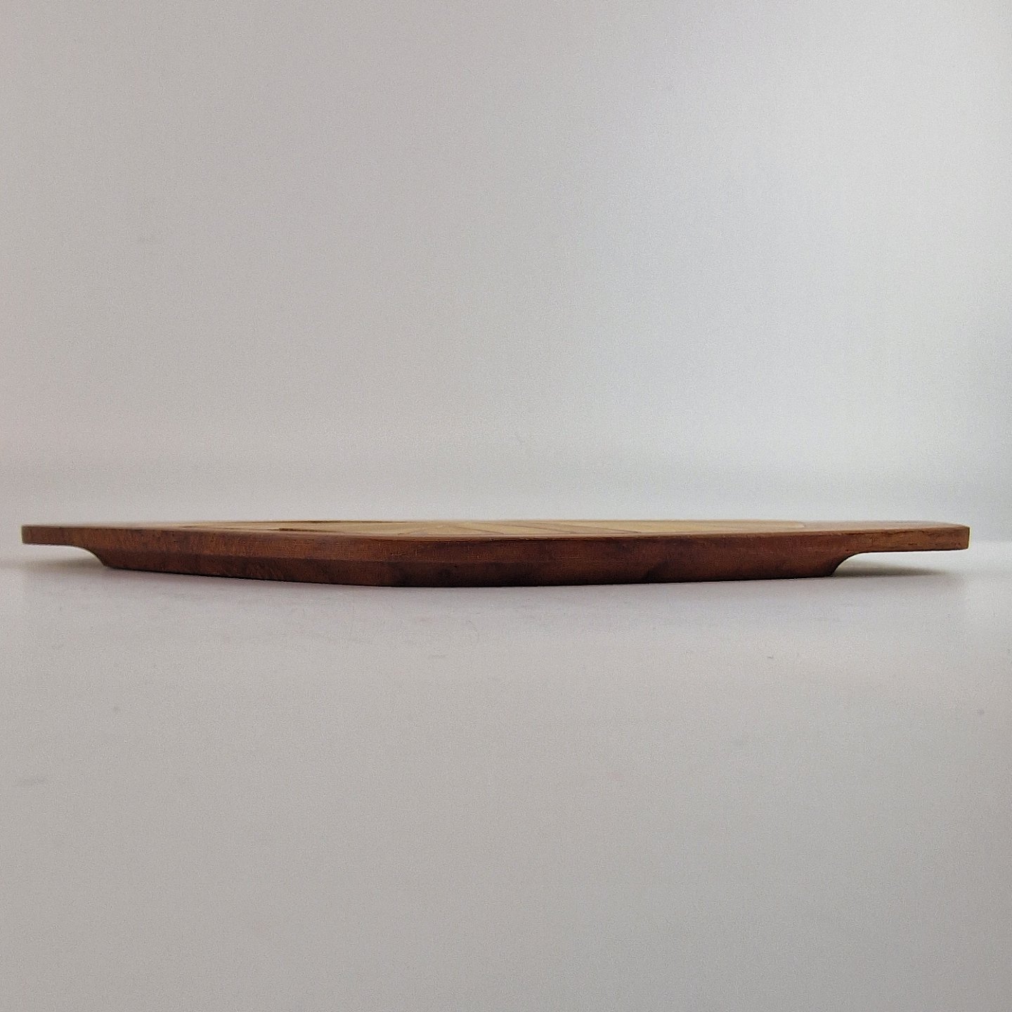 Sekskantet fade og bordskånere af teaktræ og bambus
