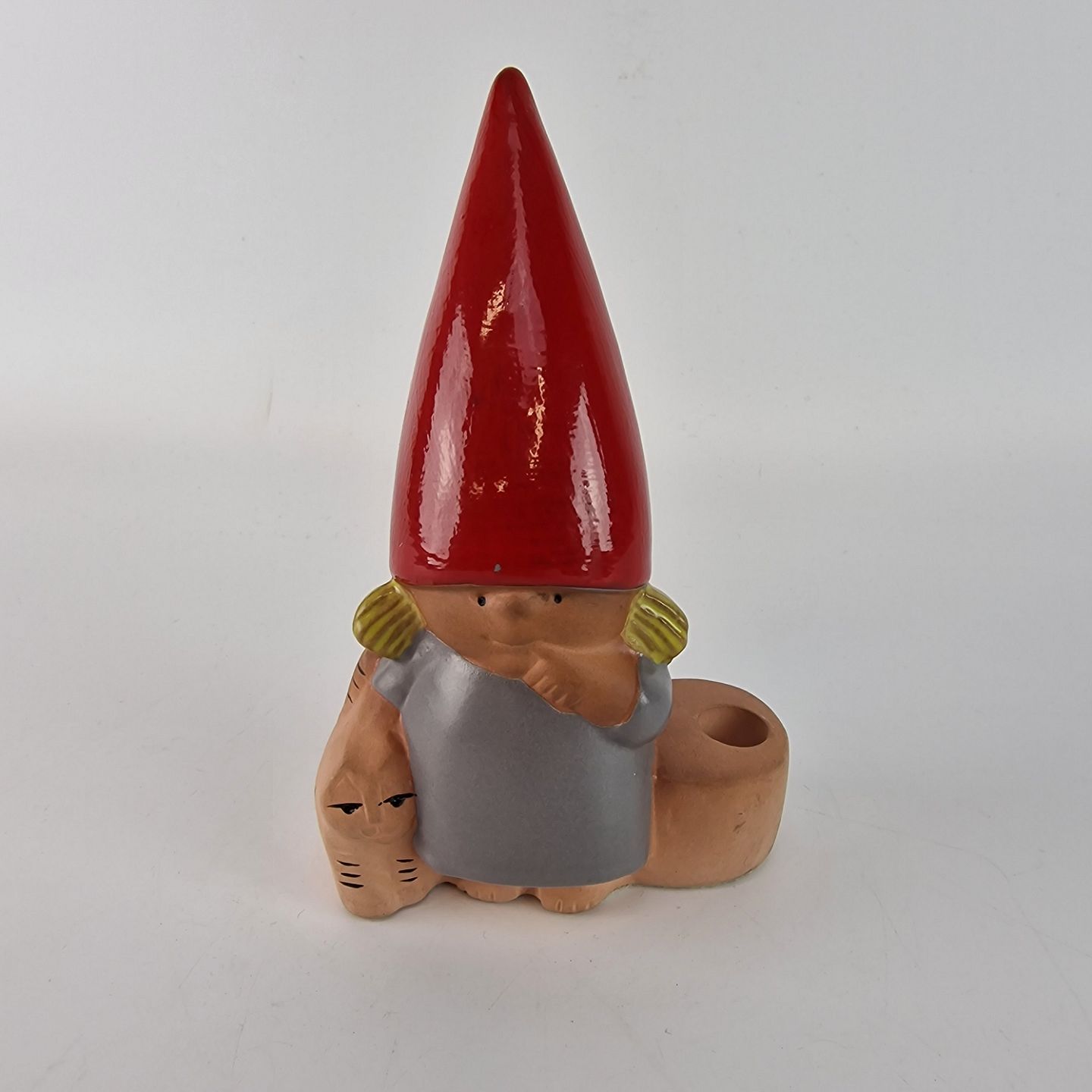 Keramikfigur af en Nissepige med en kat. Fra serien Santa's Family (Tomtefamilj) designet i 1980'erne